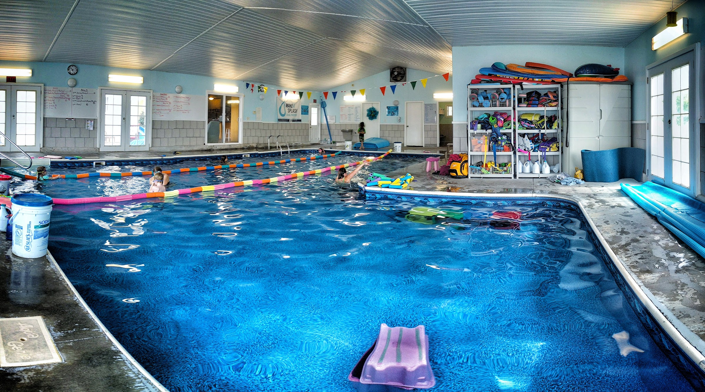 The indoor pool at The Swimmin' Hole is consistently heated year-round to a comfortable temperature of 92 degrees Fahrenheit (33.3 degrees Celsius).