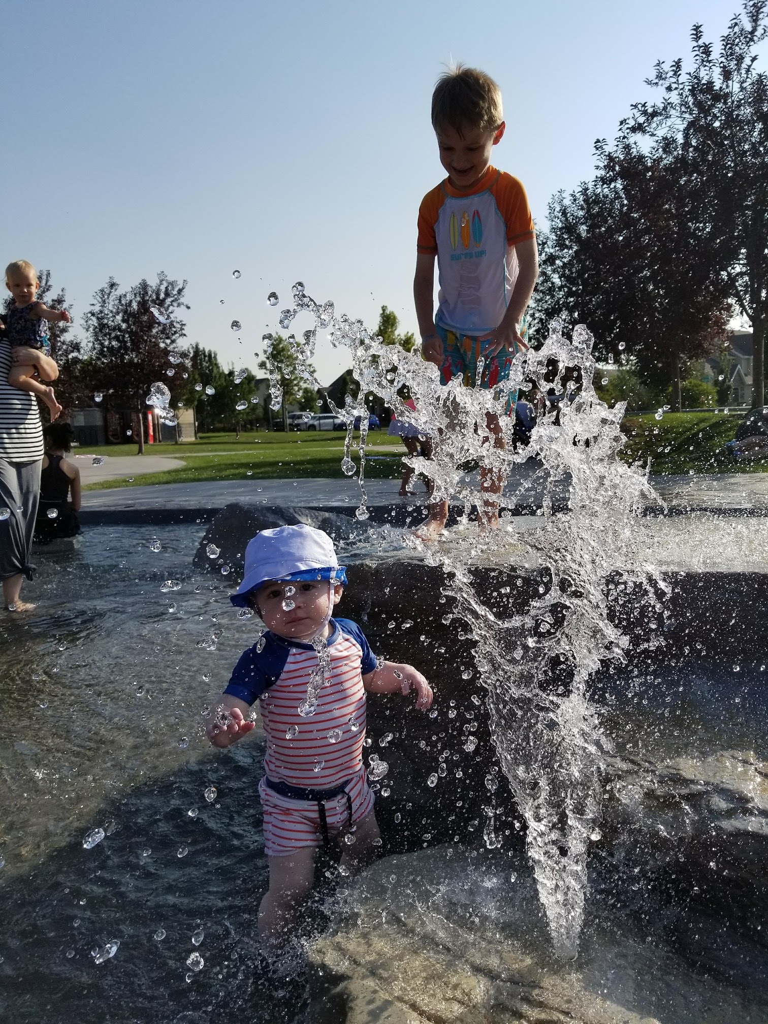 Love this splash pad! Honestly one of my favorites - I came here as a kid, but now as an adult with toddlers of my own it's at the top of my list. It's clean, well kept, fenced!!! And perfect for littler kids and toddlers. The water pressure is just right in the fountains and doesn't scare the littlest of tots. There's shady spots most of the day, and bench seating too. Beautiful grassy areas for picnic blankets and enough garbage cans to keep trash at bay.