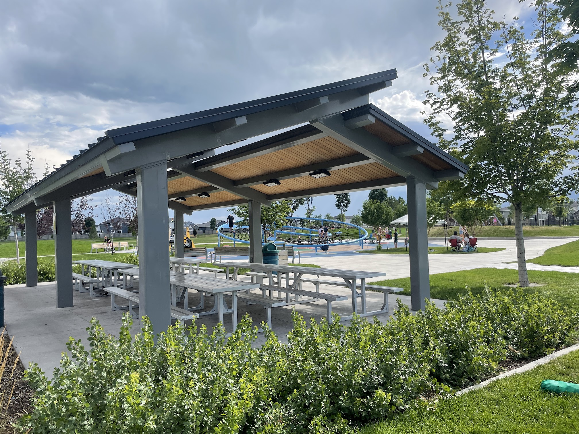 Outdoor movies are played here for free and a local heritage farm sells a variety of drinks, candy bars, m&ms, skittles, and Starburst all for under $2! All funding goes ro a grate cause. The movie tonight was wild robot! There is also a splash pad and park inside the park - duh it literally says it but wanted to inclued for those wondering. Big fields and well kept to add along side with the pavilion!! 99% sure the city of vineyard puts it on. Check their website for fun activities weekly and monthly!