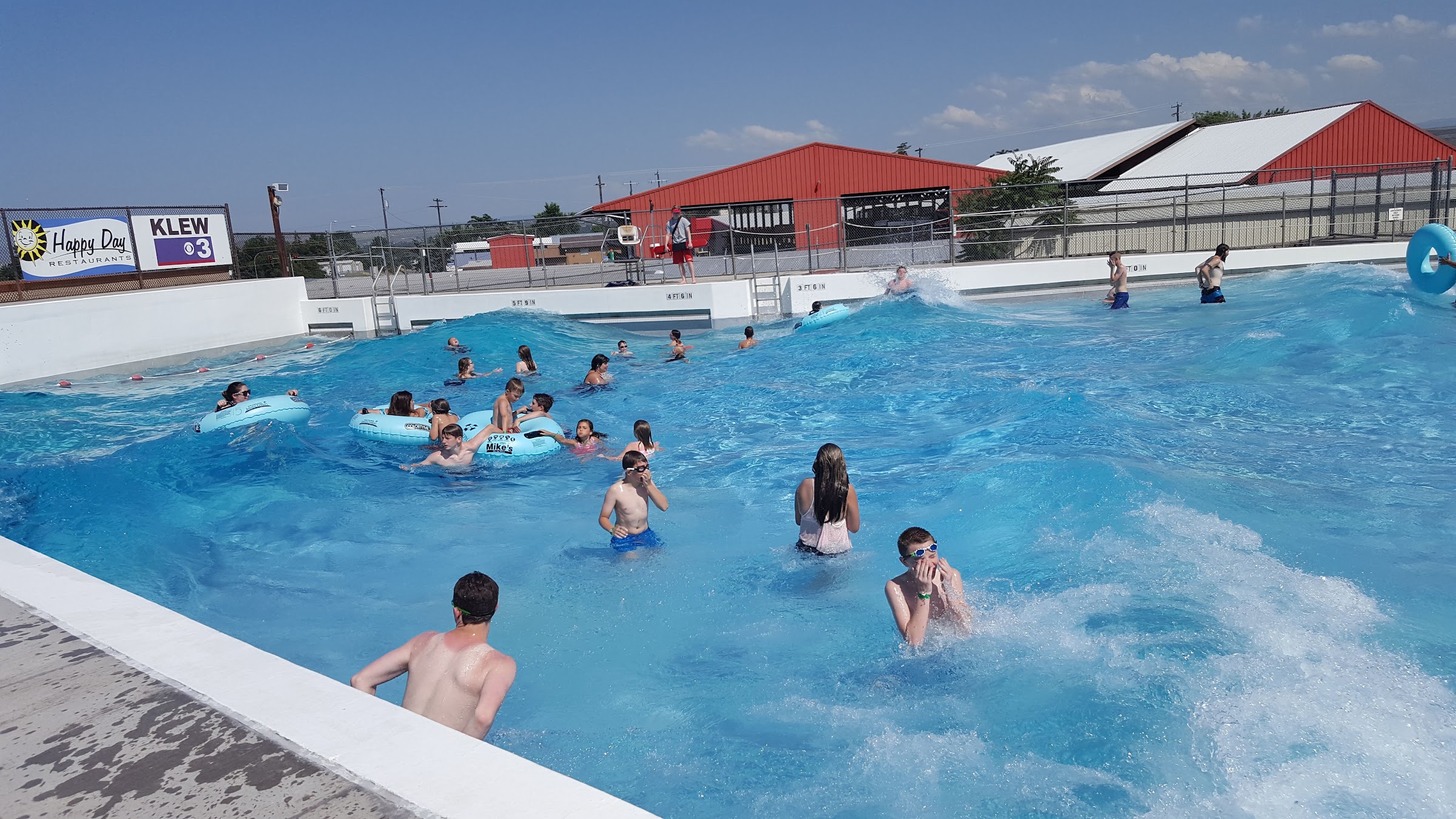 Indoor, outdoor and heated pools in a clean facility featuring a wave pool, hot tub and water slides.