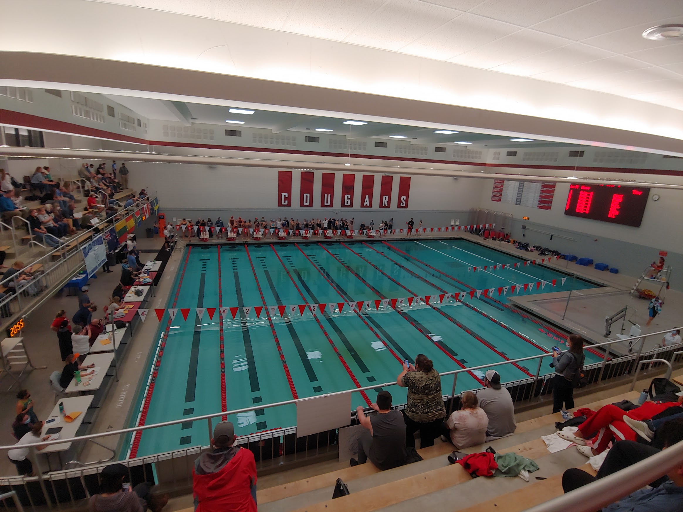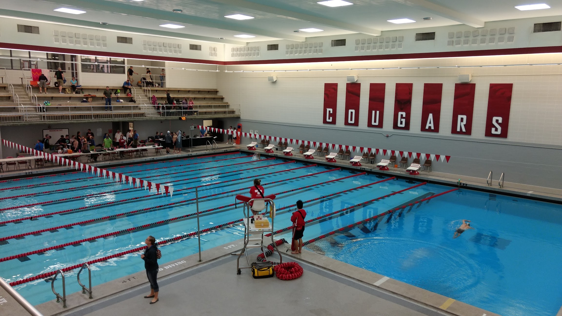 Great seating, go for the swimming and crowd! Awesome fans. Especially fun when the percussionists are there. Go Cougs!
