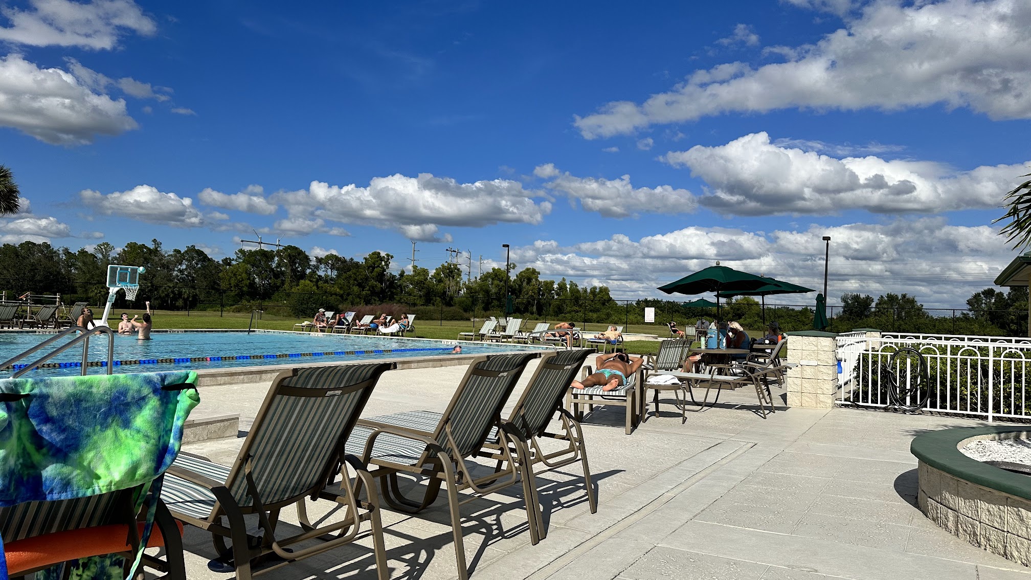 What are people saying (AI review summary)? The facility is generally described as a beautiful, very clean, and well-maintained family-oriented pool with various amenities including lounging areas, picnic seating, kiddie pools, lap lanes, and a basketball hoop. Specific staff members like Carrie and Izzy are highlighted positively. However, a crucial point of contention is that this is not a public facility; access is strictly restricted to residents only. Non-residents have reported negative experiences, including being denied entry after traveling long distances and encountering unprofessional or unwelcoming staff interactions.