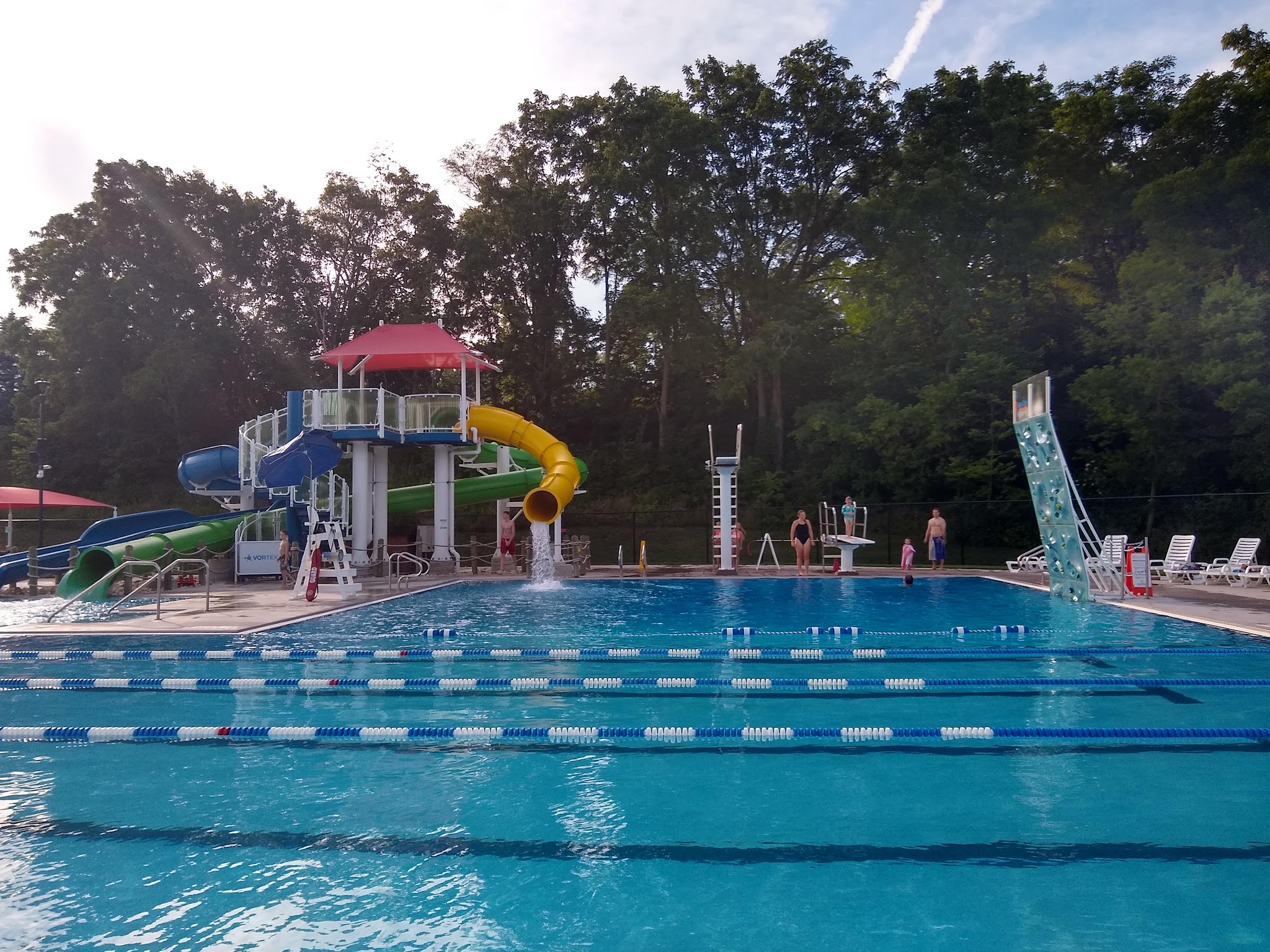 This pool has many options of entertainment inside the pool area and outside the area. Feels like a safe environment. They offer plenty of chairs and shade. The snack shop has a nice list of options. Break times are posted. Locker rooms are clean with plenty of showers and bathrooms. They do offer lockers and cubbies. I felt like their price was a little high for a non-resident compared to most pools in the area, but on the flip side the water was fantastic, they have a lot of options overall I would say it was fair once you weigh in everything else.