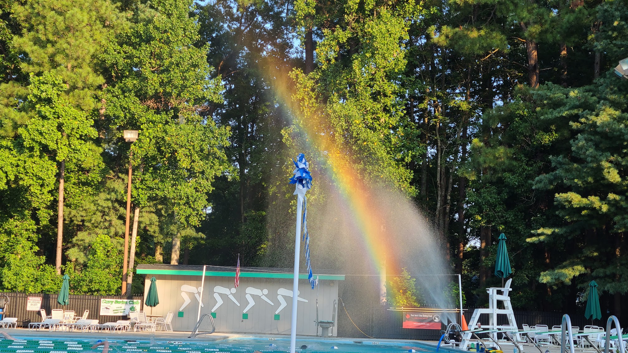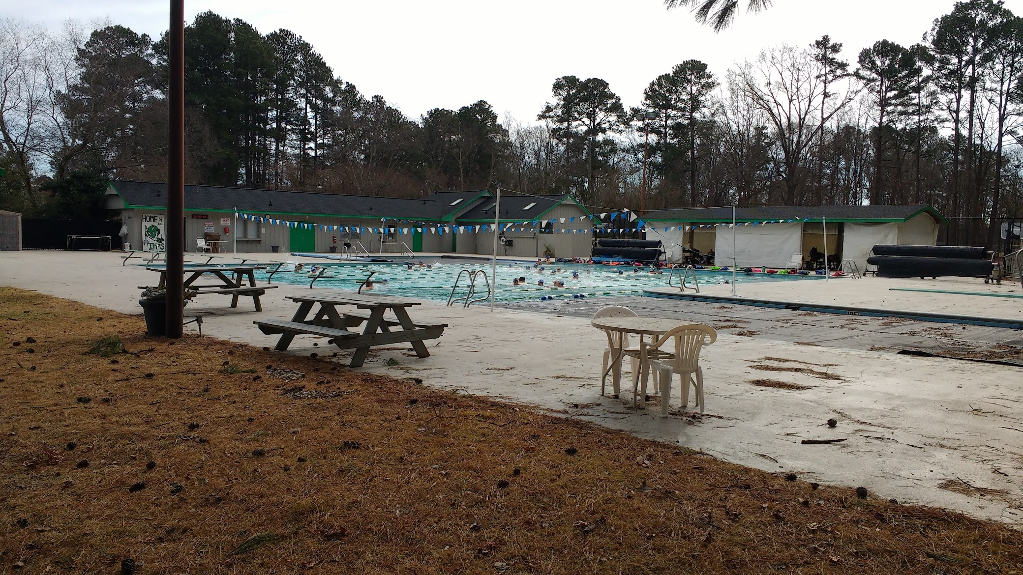 Nice pool! During amazing weather it's super nice to swim in. It was a bit dirty and unclean water. It was full of pollen and pine needles, but the water was clear and warm. Other than that great place to practice!