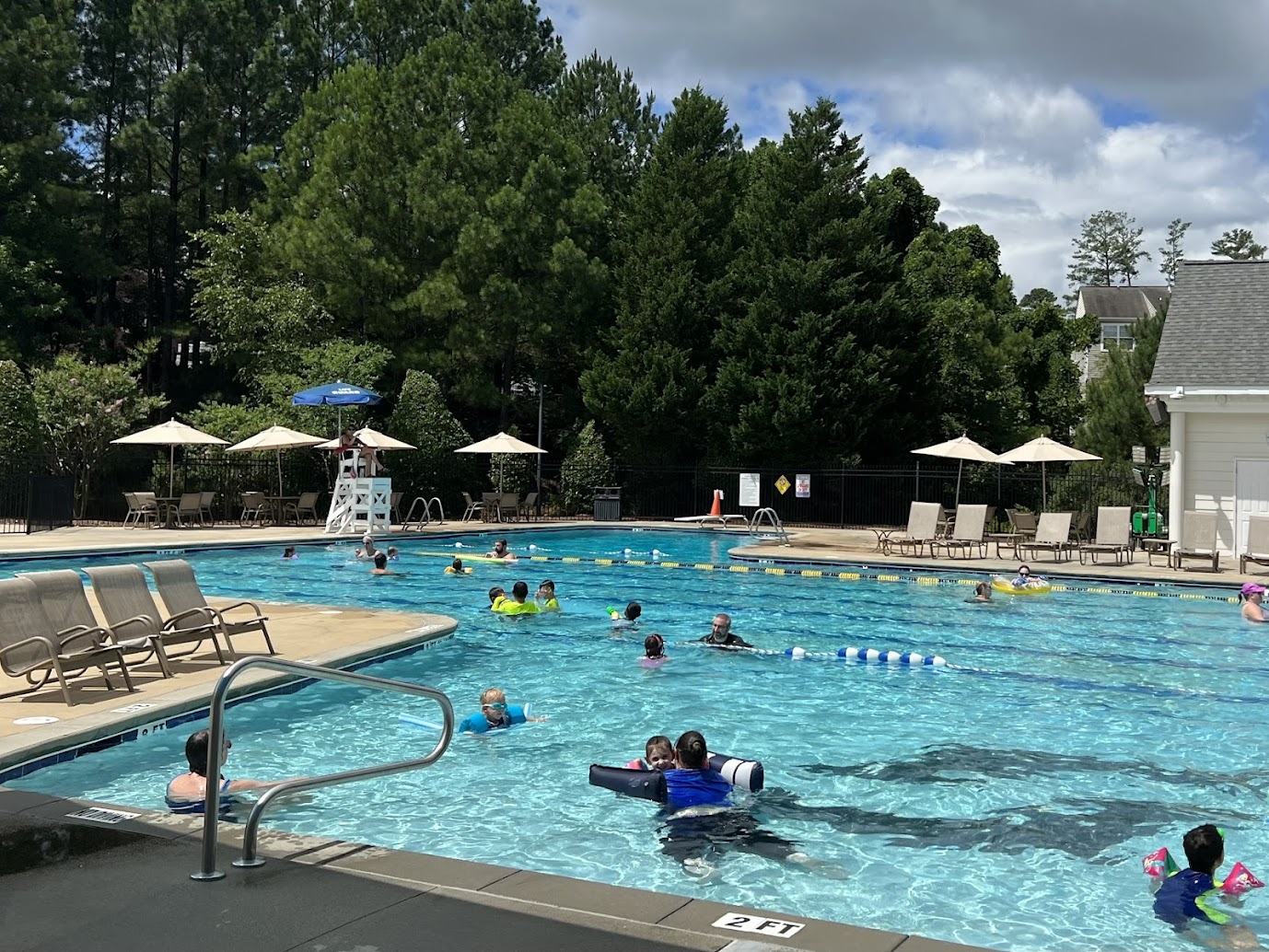What are people saying (AI review summary)? Reviewers highly praised the community pool for its nice seating, including umbrella tables, and the enjoyable water. The cleanliness of the entire area, especially the changing rooms and restrooms, received particular appreciation. There was also gratitude extended to the staff responsible for maintaining and running the pool.