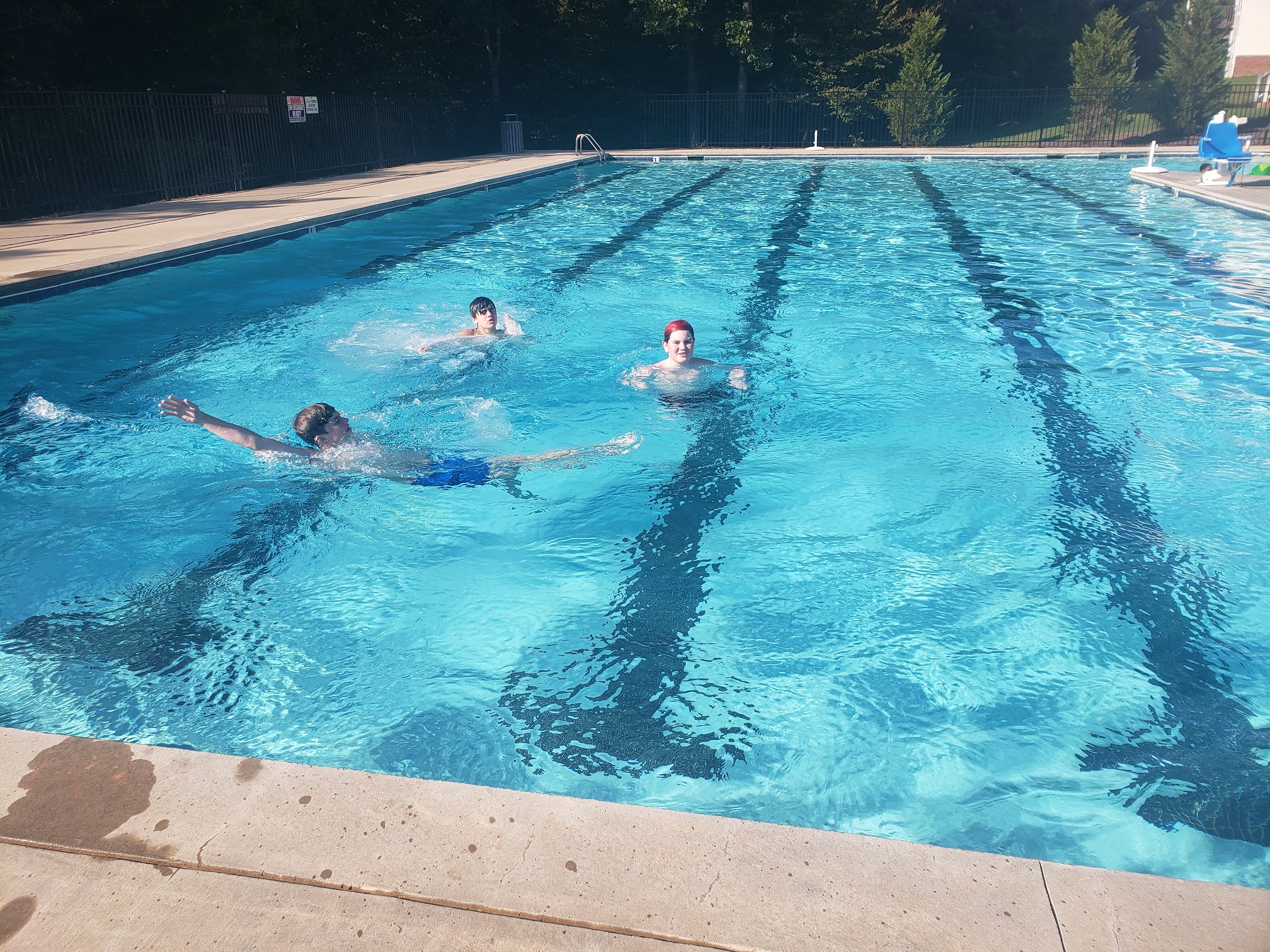 Beautiful, clean pool with lovely seating all around. And a place with shade best part, the POOL is handicapped accessible with MOTORIZED CHAIR so handicapped folks can get lowered into pool!!! My friend and I are excited for this summer!