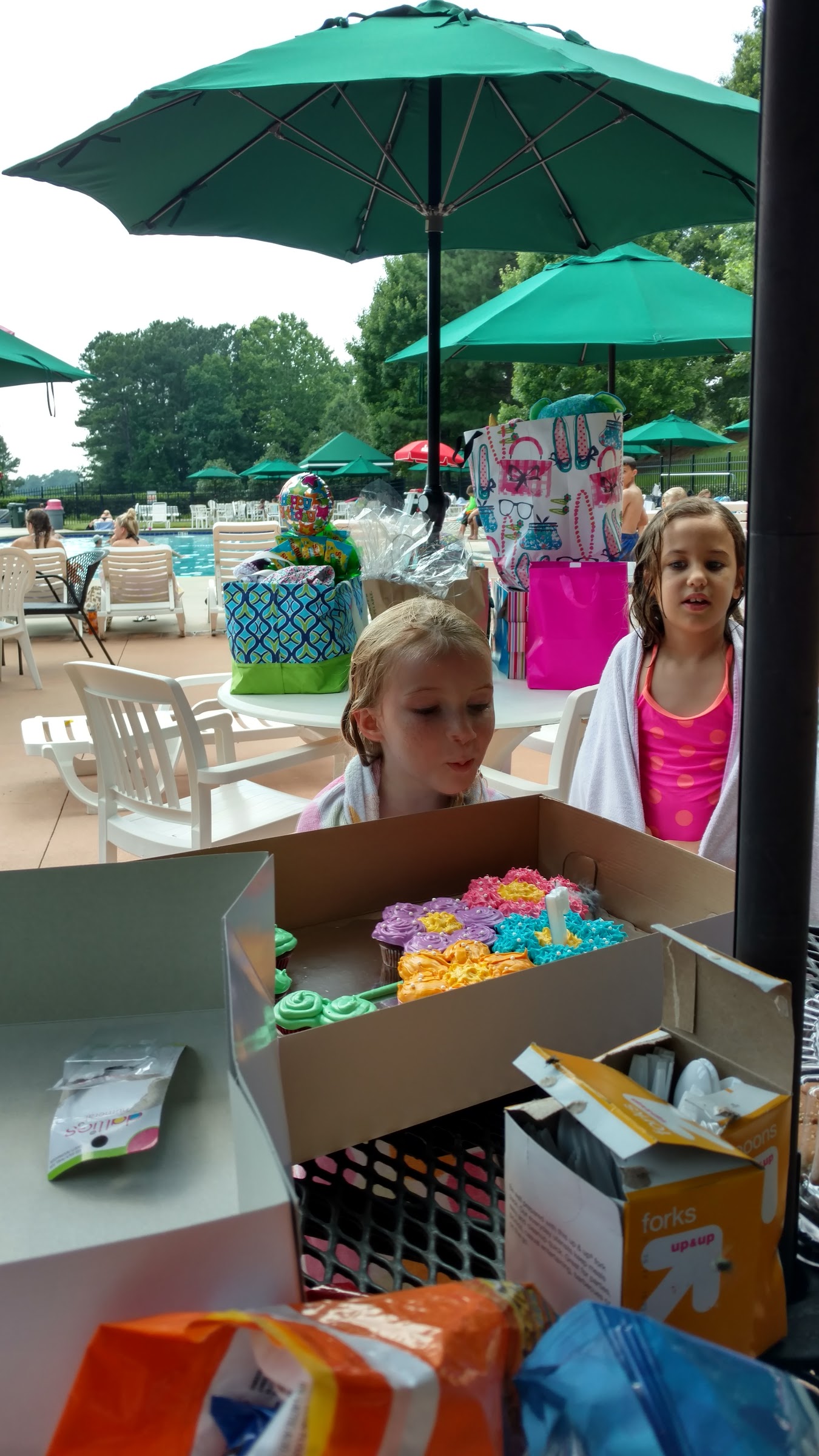 Big pool lots of space grills available lots of seats slide too