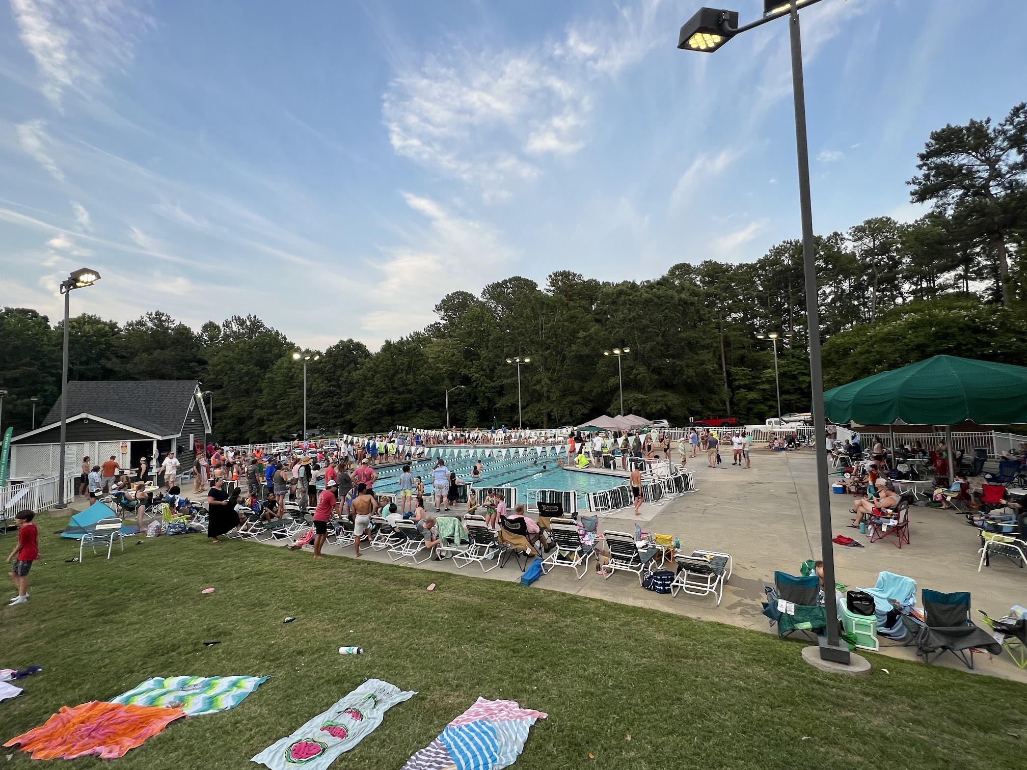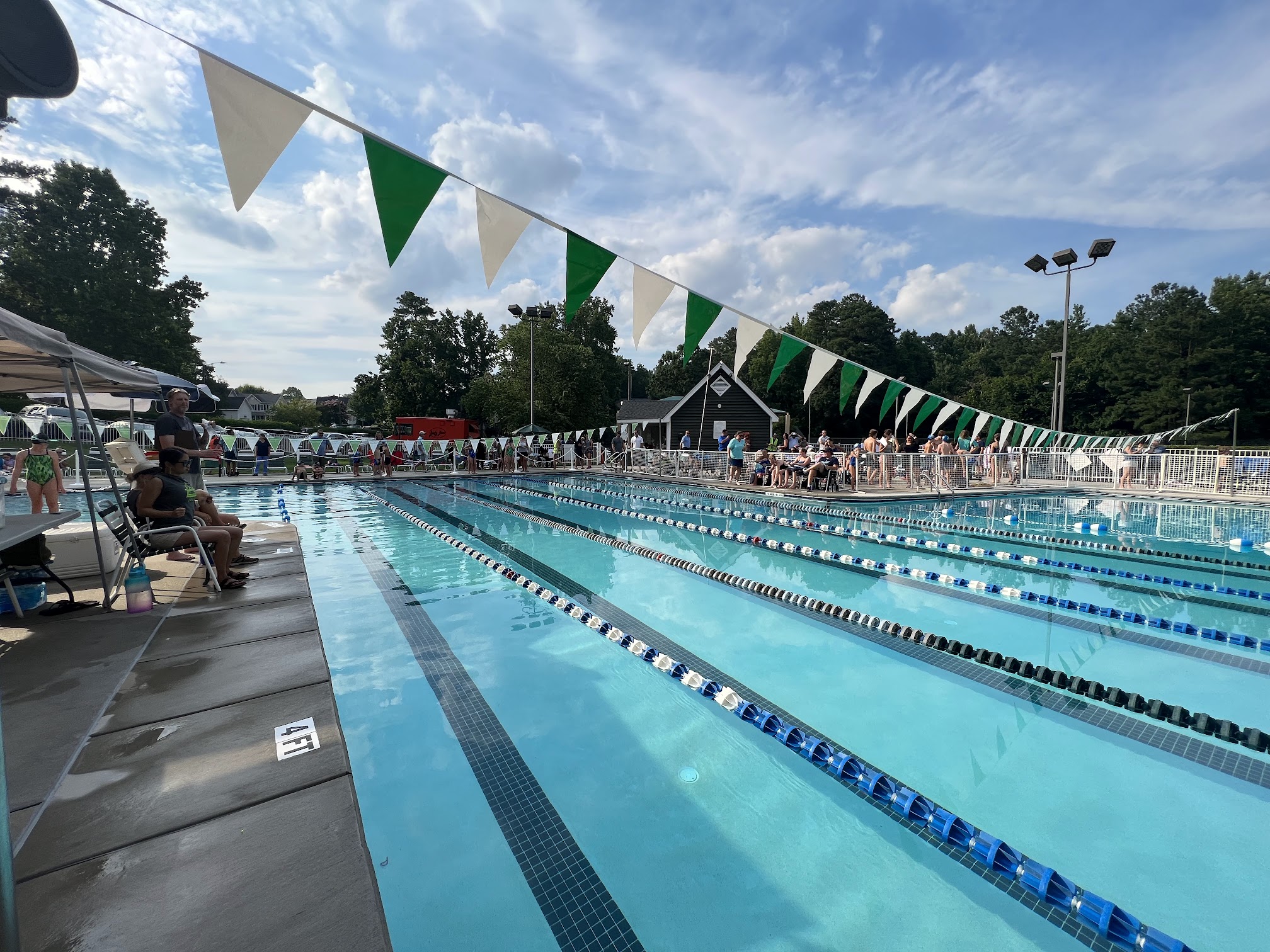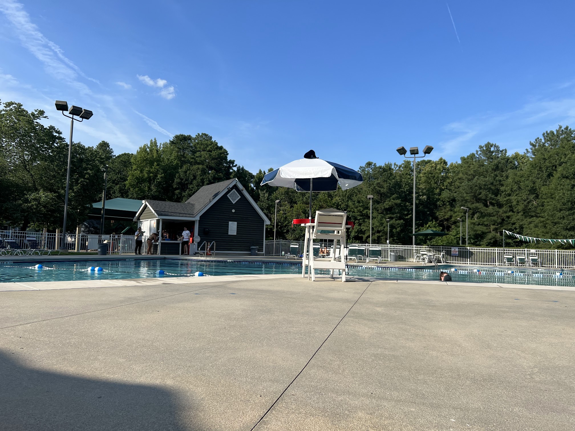 Good pool with deep end for diving, lanes for swimming and a shallow end for the little ones. Lifeguards are friendly and professional. Wish there were a few more umbrellas (big ones are awesome when you can get them) and wish that the snack bar was open times beyond swim meets.
