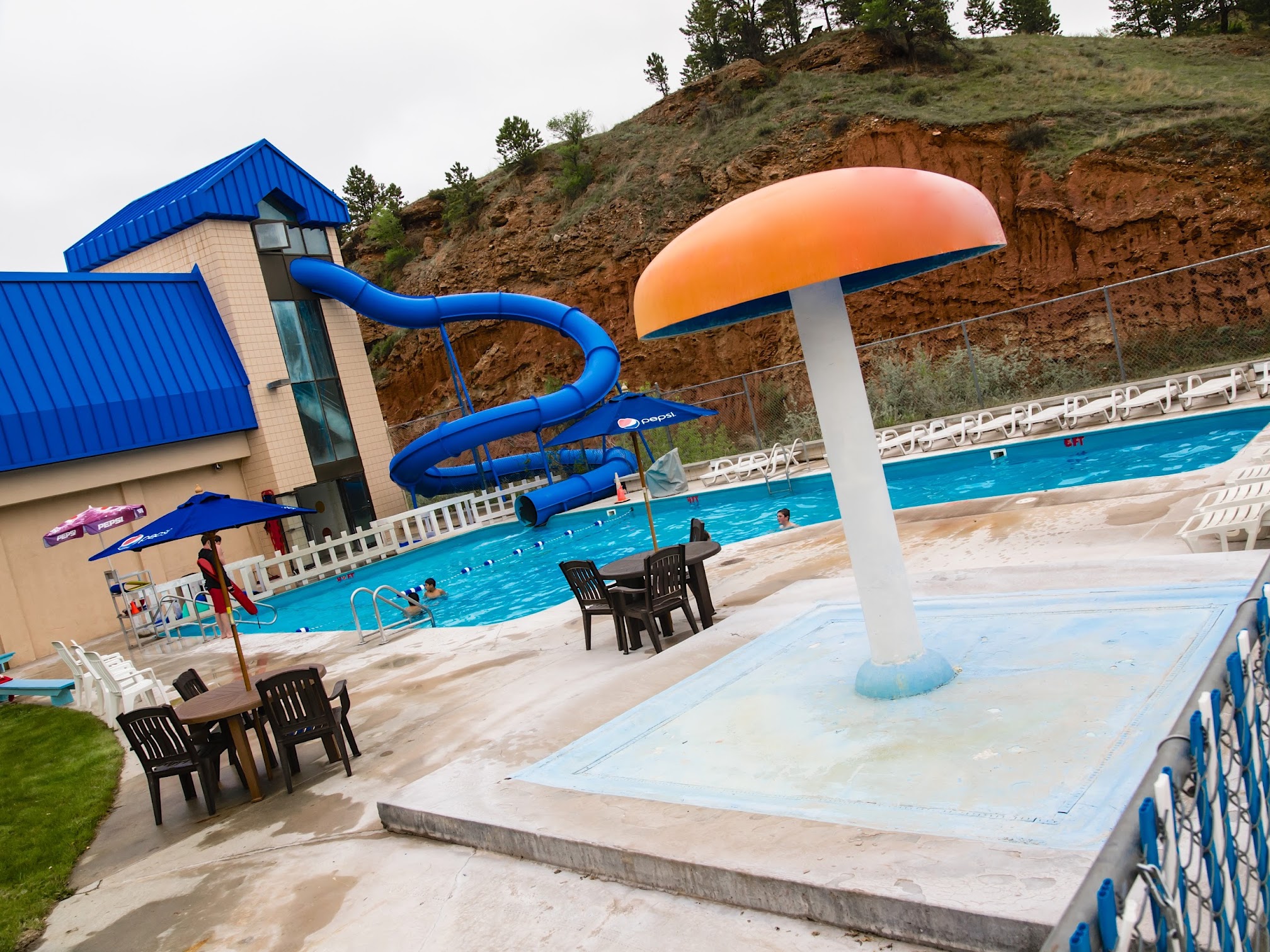 Water park featuring an 87°F spring-fed pool and 3 slides, plus various other pools and activities.