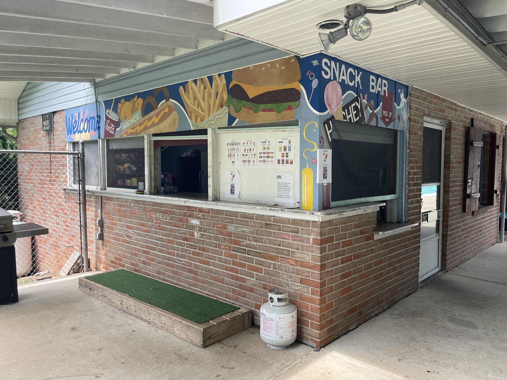 My aunt is the manager I like the pool they have a diving board a not too crazy slide and a basketball hoop but the pool is small the deepest part is at the diving board and you can only swim there after you dive and the deepest that you can sleep in is 6 foot there is a medium amount of people that come and they have a good food court but I would go again but as a last option