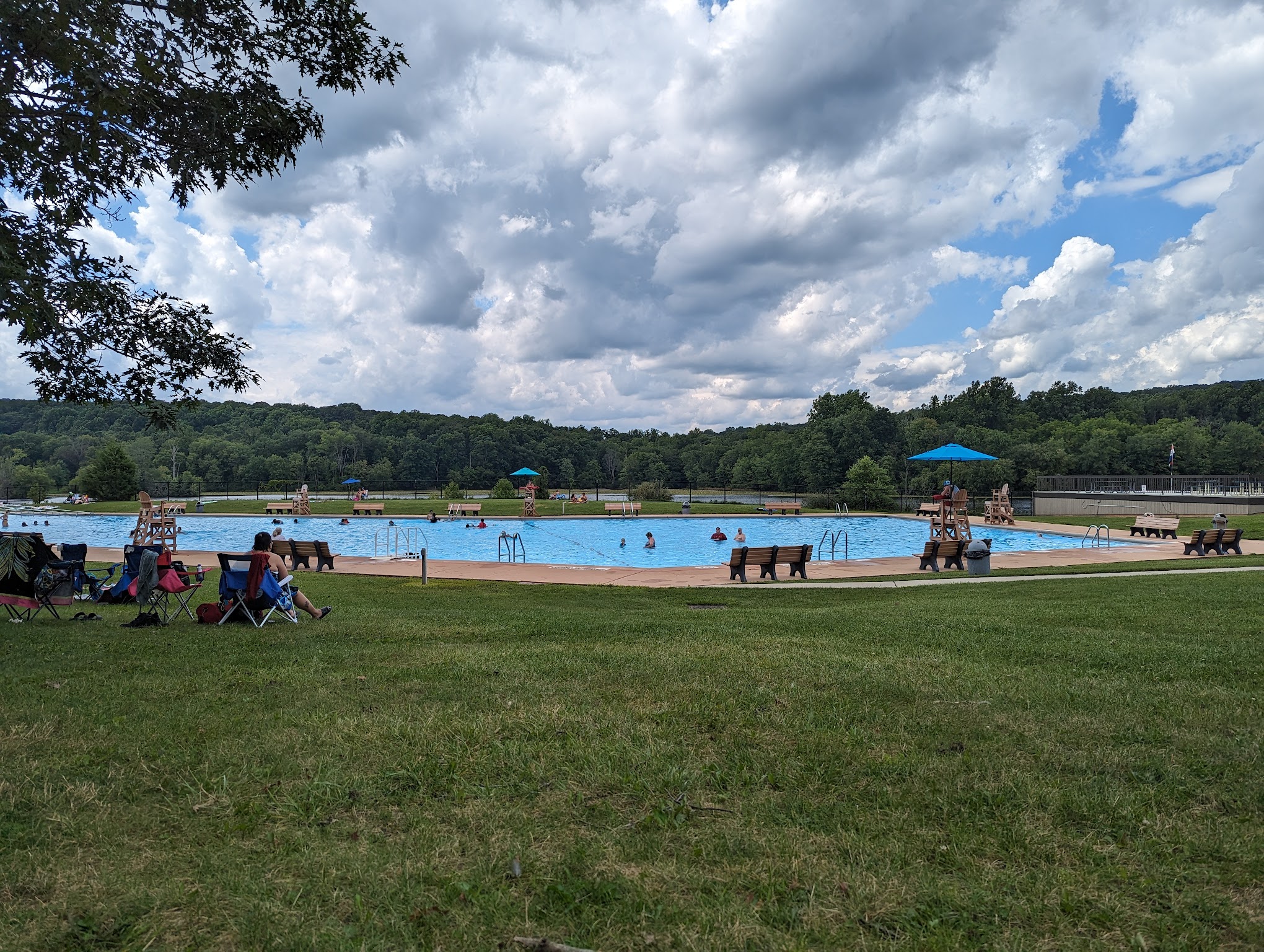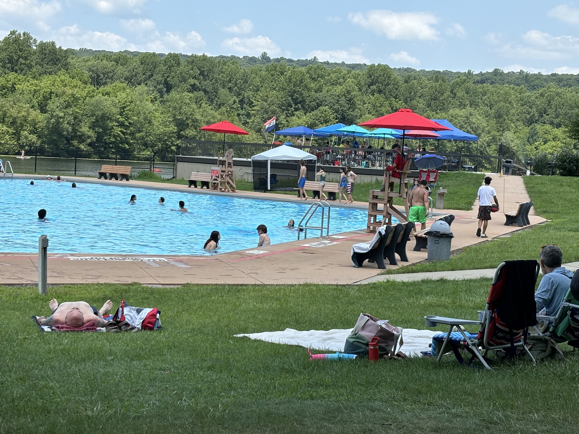 Spacious lawn area surrounding pool. Two private pavilion sections. The food stand is affordable. Love the kid section of the pool. Great for the littles