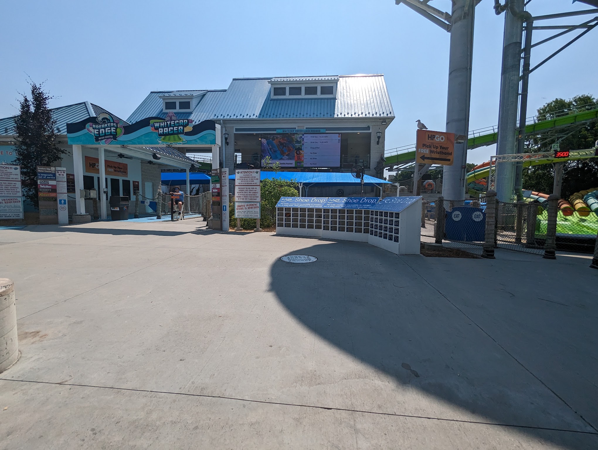 I agree that the placement of the shoe storage is less than ideal. However, this is my favorite ride on a hot summer day!! I have a heart condition that requires constant hydration and the staff is super flexible about me bringing my medically necessary water bottle. I appreciate this accommodation!! It allows me to stay for multiple cycles without having to get off to replenish my water intake. The lifeguards are also extremely vigilant which is comforting for small kids. I don’t love that the waterfalls are sometimes unavoidable during peak times, but other than this the intracoastal waterway is the perfect summer getaway!!