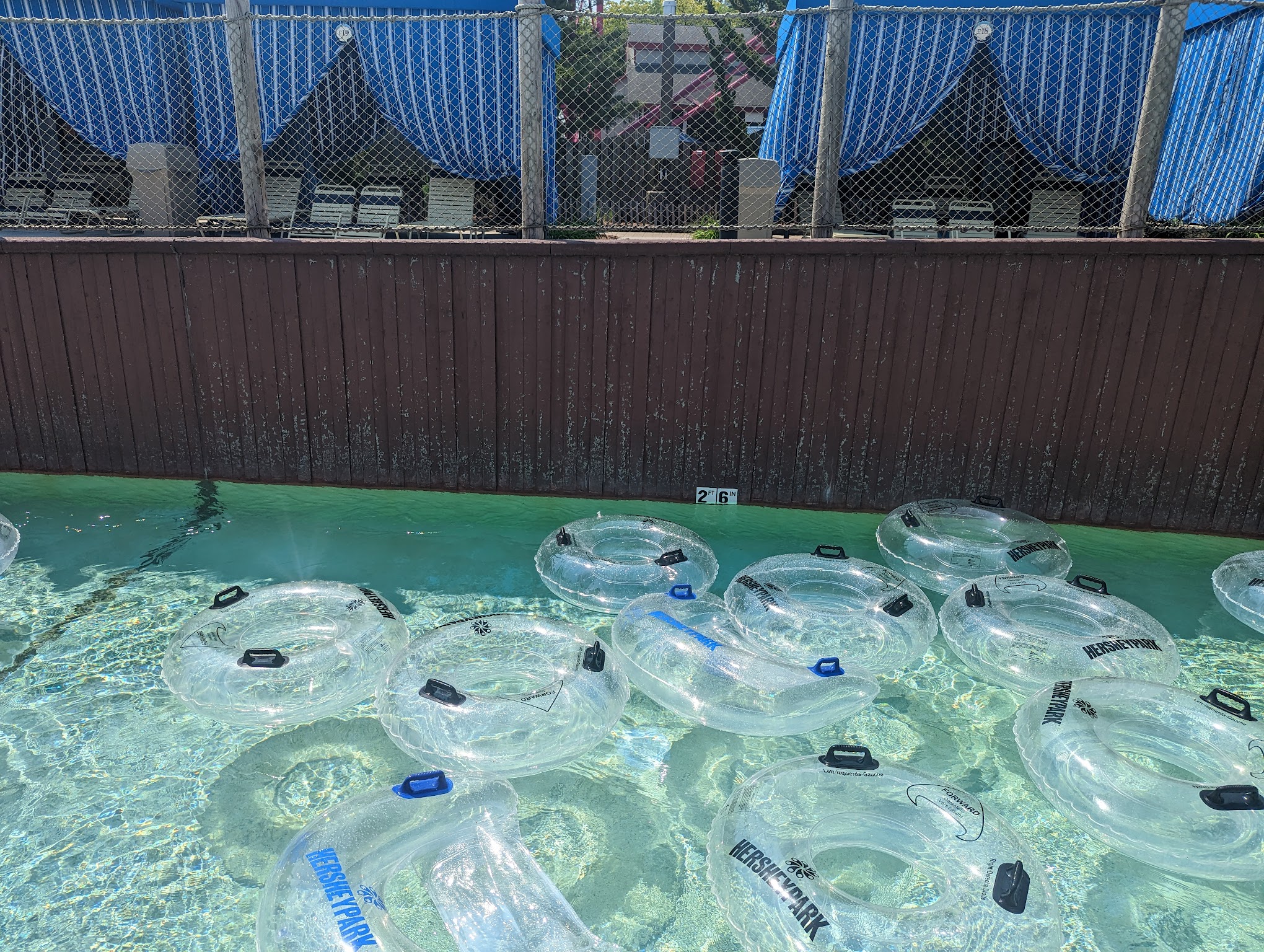 The lazy river is a great way to cool off and take a break at Hershey park, while still enjoying the Hershey park experience