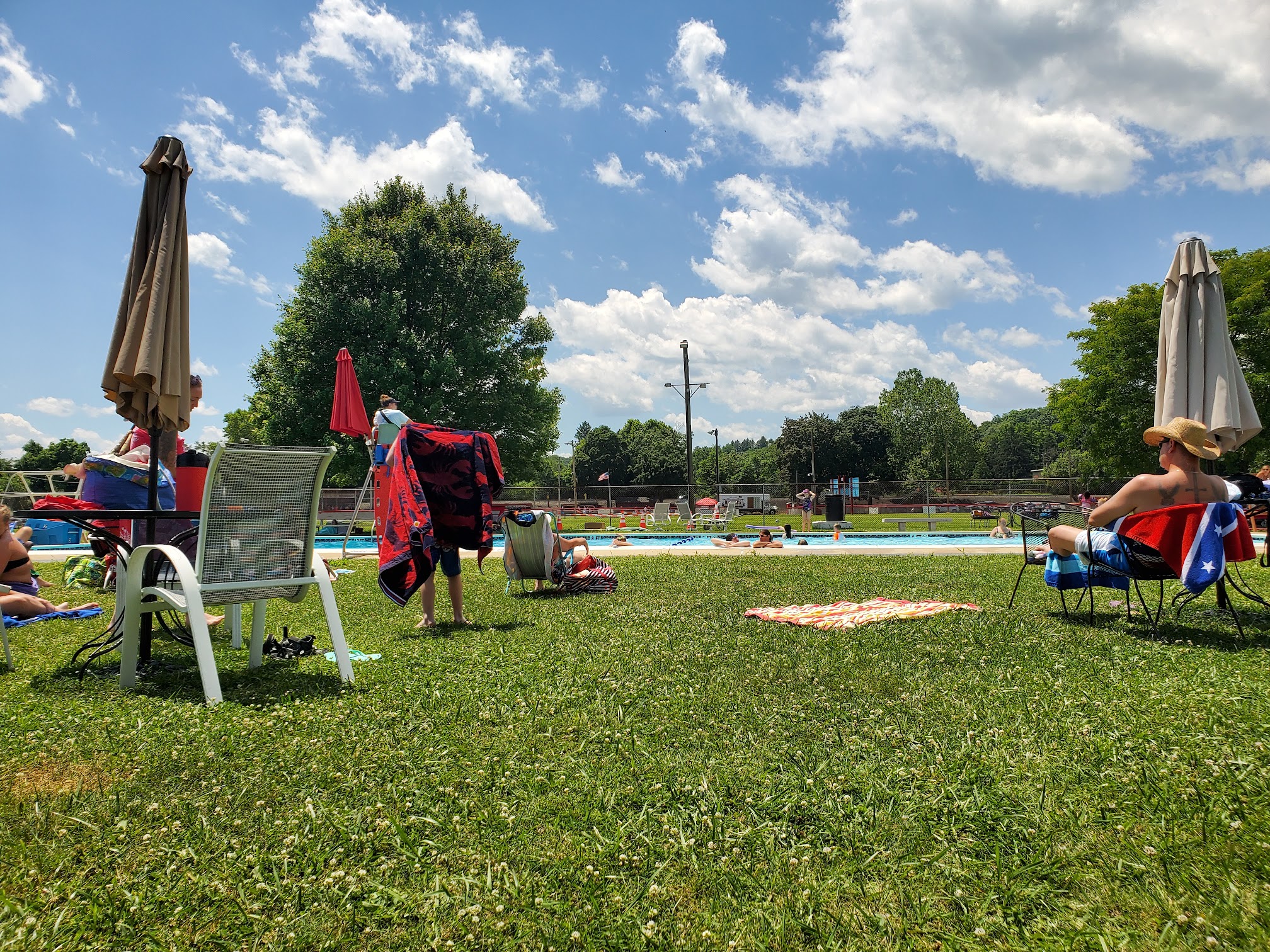 What are people saying (AI review summary)? The pool receives mixed reviews. Positive feedback consistently describes it as a nice, well-maintained community pool, often suitable for families, with reasonable day rates. Amenities like chairs, tables, a diving board, and a baby pool are mentioned, along with nearby parking and a food selection. Some patrons praise the lifeguards as well-trained and attentive, noting a respectful environment. However, there are significant negative points: one review details a serious safety concern where people were throwing balls and hitting others, with lifeguards reportedly unresponsive and seemingly confused. Another review expressed disappointment when the pool was unexpectedly closed on a specific date. A lack of shade and the absence of a slide were also noted by some, contrasting with other reviews that mentioned available shade.