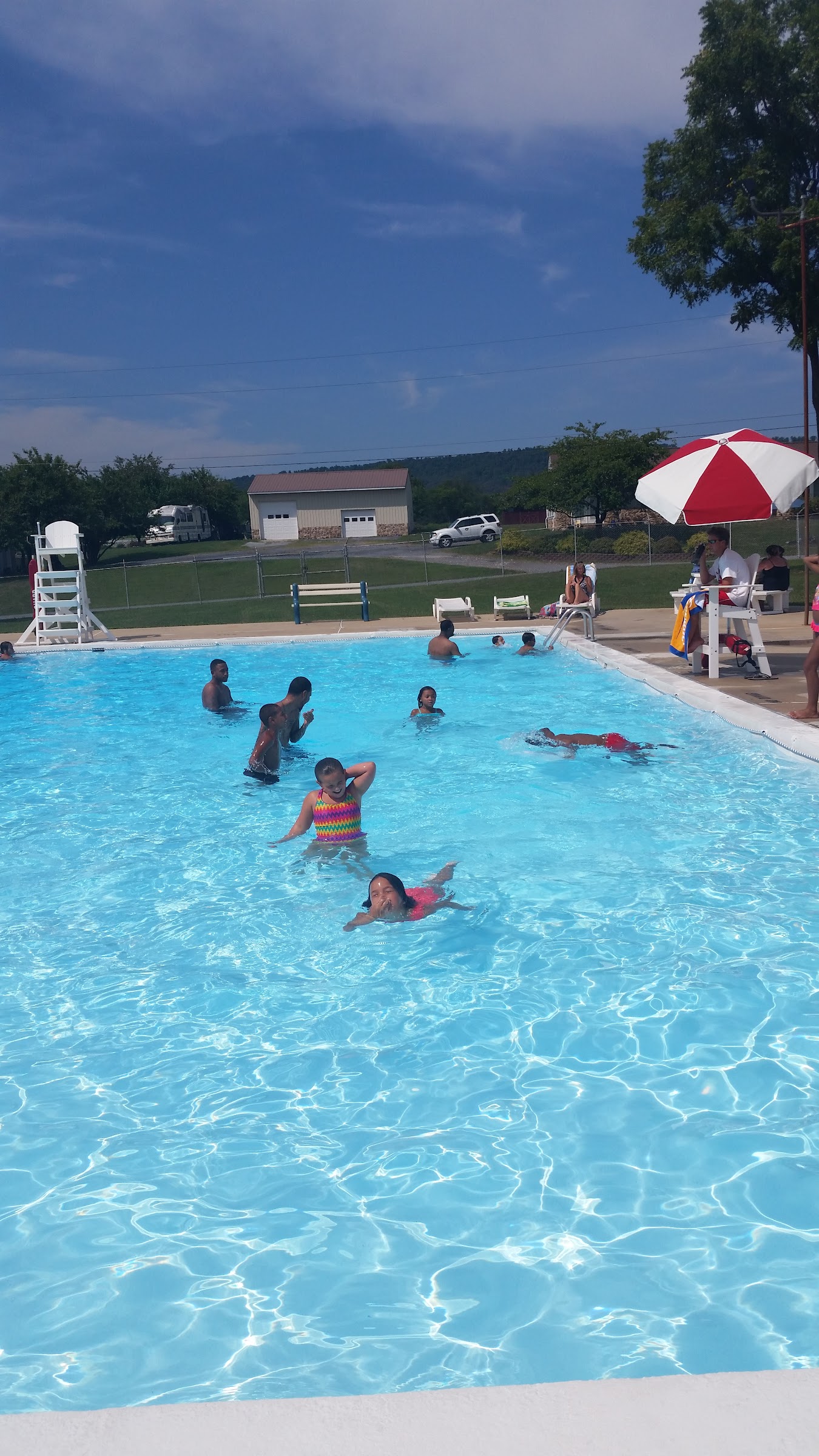 The pool is nice but a little small. There is also a small kiddie pool. They no longer have the diving board. They have what they call "adult swim" which lasts roughly 20 minutes. There snack shack has good options/choices to choose with decent prices. They definitely need to have more lounge chairs available. There is never enough of them. Since the pool has nothing built in for the kids to play with they need to allow the kids to play with their own swim toys but they DON'T allow that most of the time.