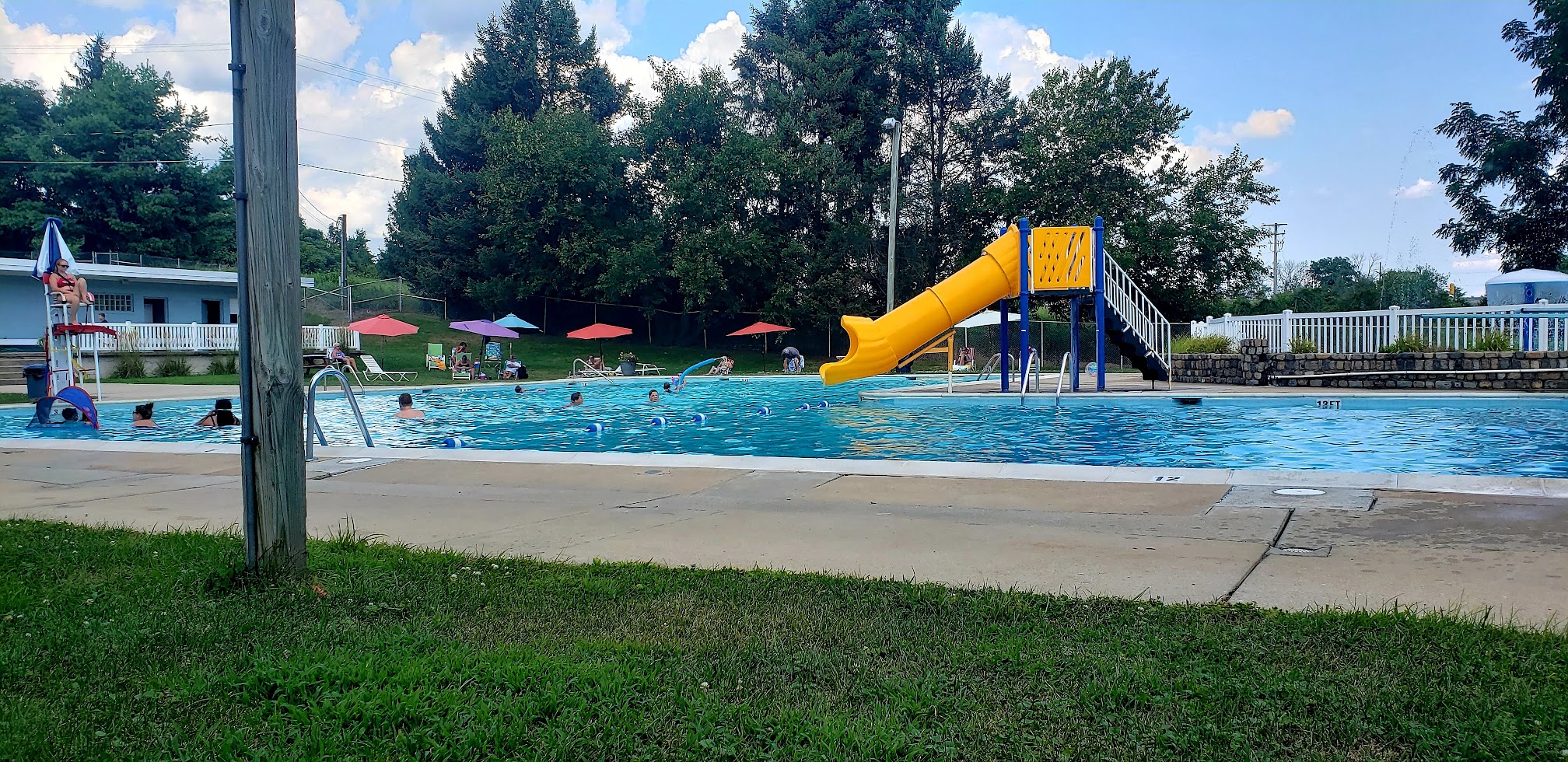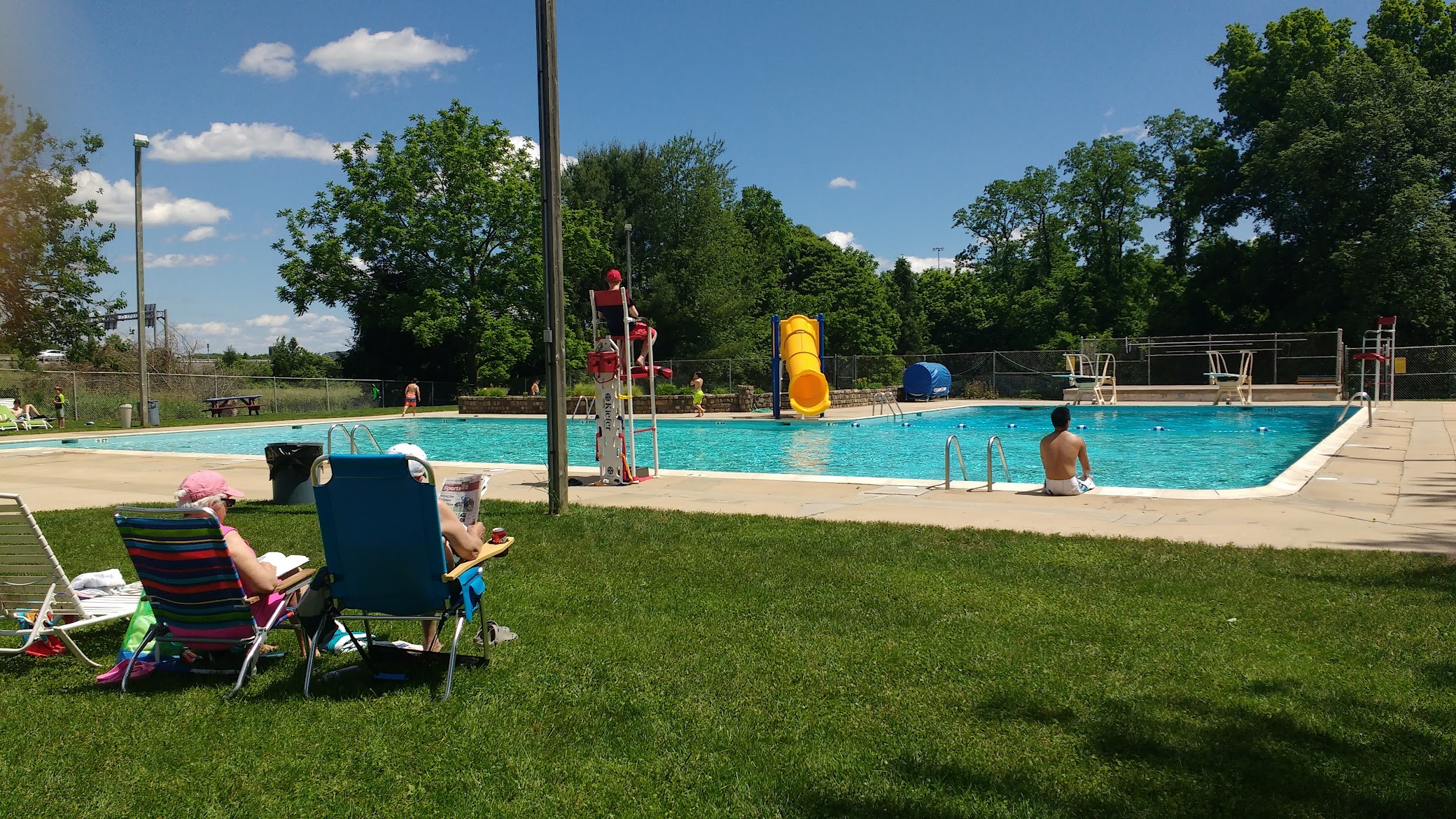 Perfect for the family. Simple but clean. Chairs and umbrellas available. Nice variety in the snack bar (not a place for a huge meal though). Guards are always helpful if you need something. Has a summer swim team. Also do activities in the summers like movie nights.