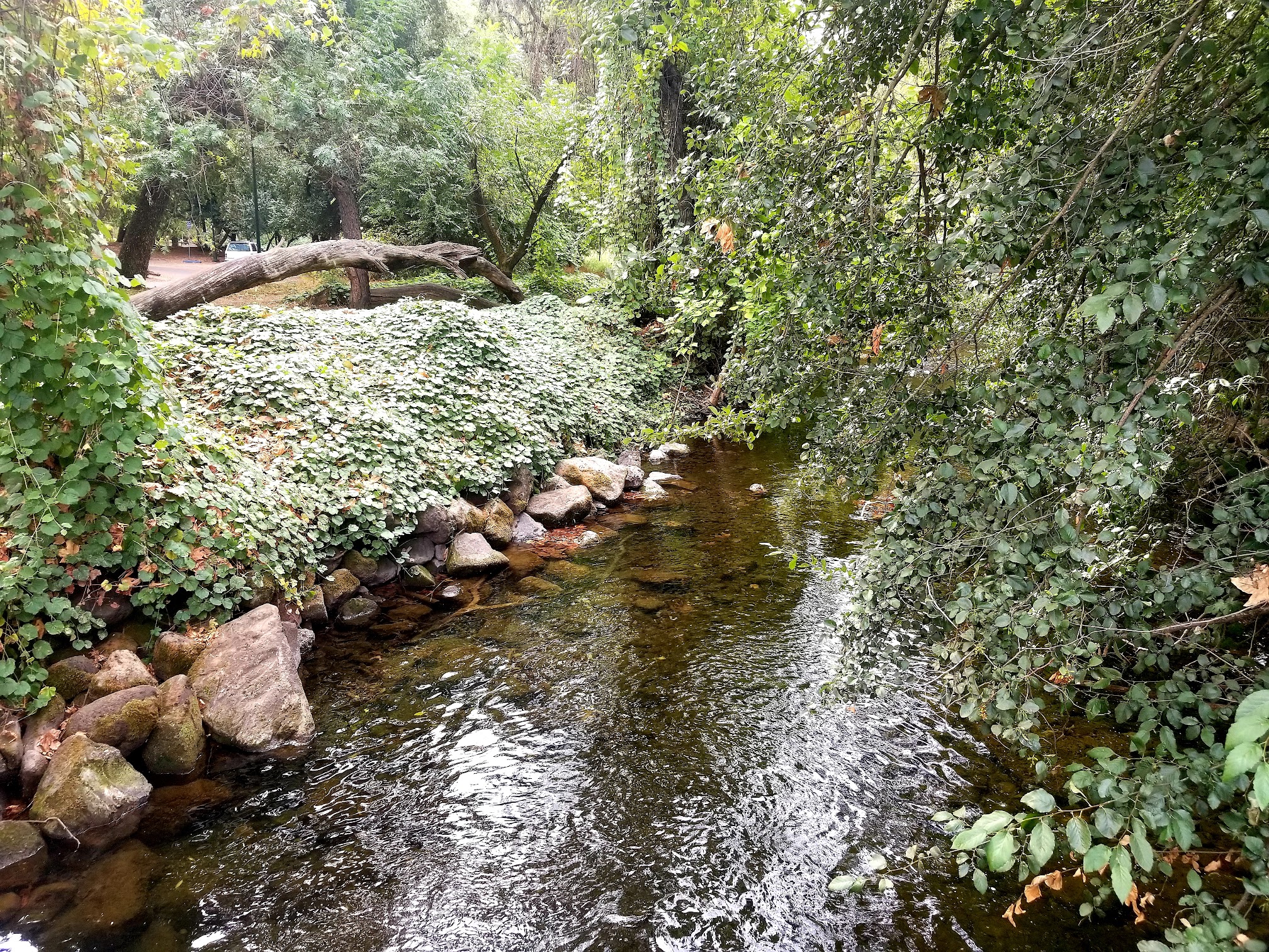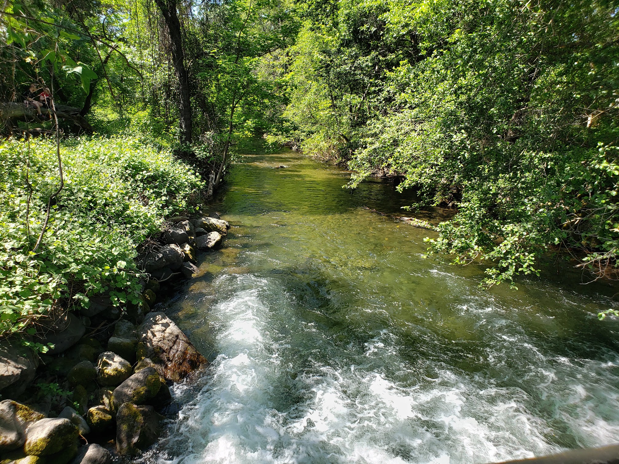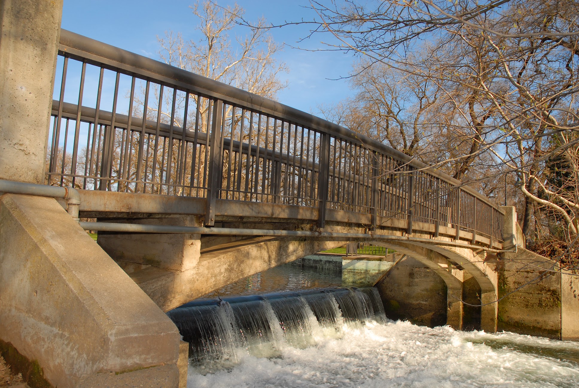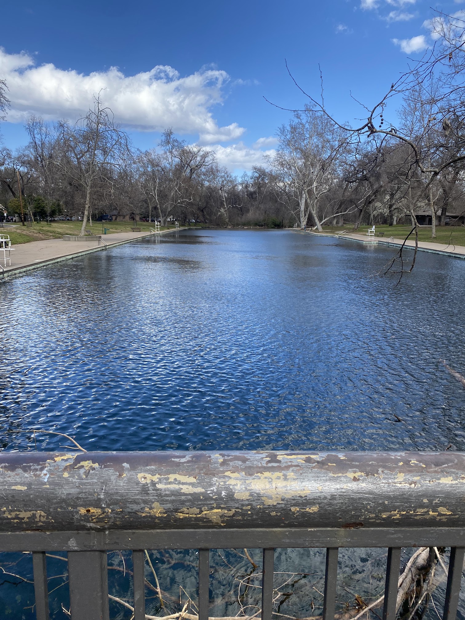 Public swimming area formed by a dam across Chico Creek, with picnic areas and playgrounds.