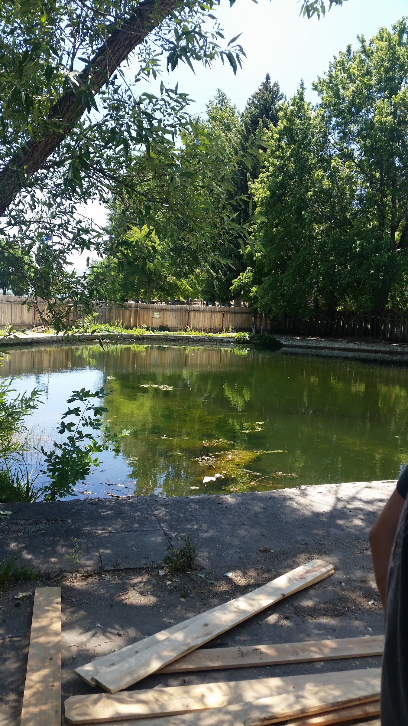 OPEN! There is an unfortunate "Closed..." added to the title of this place, but it's actually open. The bottom of the pool is a bit rough. Reminds me of the old days in my grandmother's pool. On a busy day, you can see floaters. The diving board is conspicuously missing. It's $70 to rent a cabana for about 2 hours. For me, today, with a high of 99-100°, it was a refreshing relief from the heat at the local campground around the corner. "No cotton clothing" in the pool. Recommended: bring your own chair and shade.
