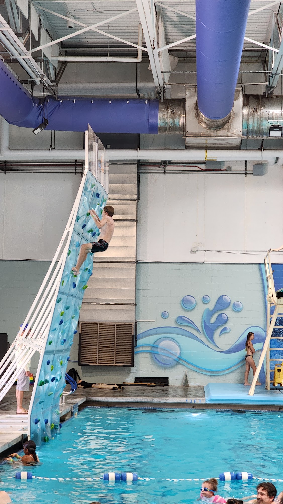 What are people saying (AI review summary)? The swim center receives overwhelmingly positive reviews, consistently praised for its excellent and diverse facilities, including slides, a rock wall, and a splash pool, offering a fun experience akin to a water park. Patrons highlight its affordability, large size, and the exceptional staff, with special mention of Supervisor Richard, his lifeguard team, and therapist Claudia for her therapeutic impact. The center is also commended for its smooth adaptation to new regulations, ensuring a safe environment for all visitors.