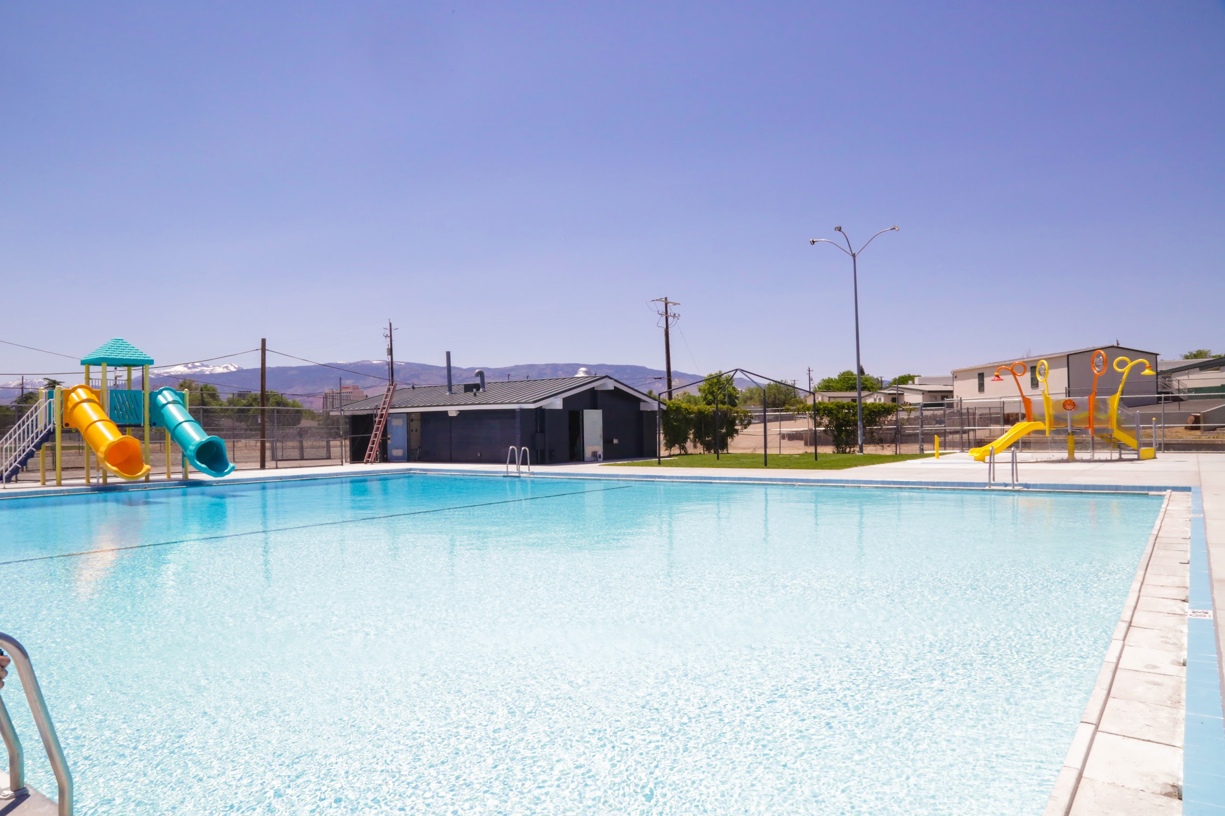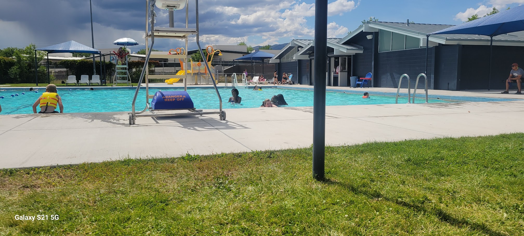 This pool was really nice. The water was crystal clear and surrounding area very clean. My little one lived the splash pad. It has lots of features including a slide. Be careful at the slide as it gets slick with water and the kids come down really fast. There is a pad at the bottom but my child kept skidding off of it because of speed. The pool is huge and has two slides in the deep end. There were several lifeguards on duty. All employees were very friendly and helpful. A group of camp kids showed up and at that time they asked us to move to the deep end so they could swim test them. There were probably 40 kids getting the test, which is good that they do that, but a little off putting when you have a toddler who doesn't swim well in the deep end. We would of just gone to the splash pad but my child wanted to stay in the pool. All in all it is a nice pool and We had a lot of fun!