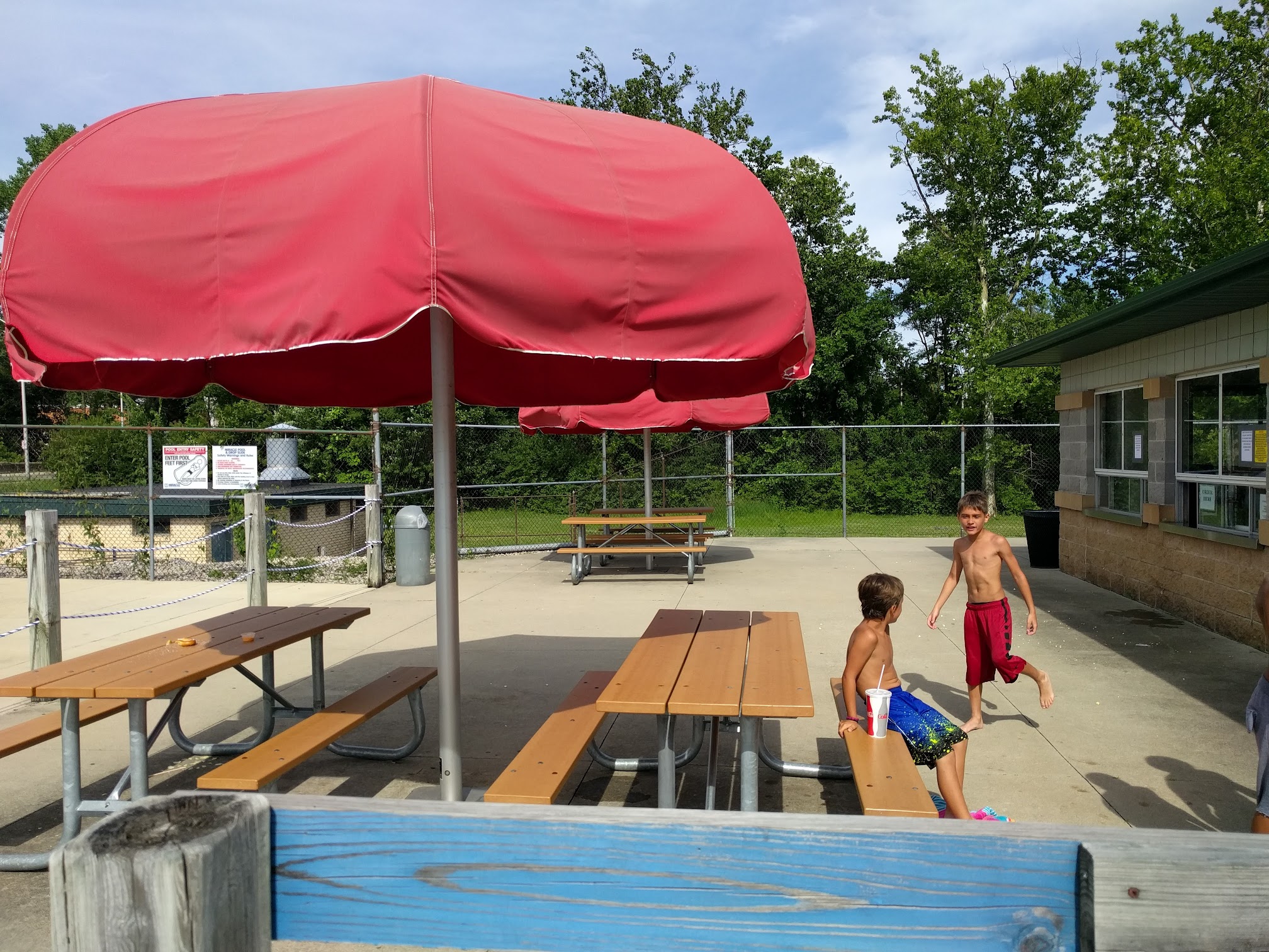 They open at 12pm. And on weekdays if you go early enough you could have the whole pool to yourself! :). The water slide is solid. Separate kiddie pool area with several nice features. It’s also an Olympic sized pool with both deep and shallow water sections cordoned off. Diving board, slide and a climbing wall. They also offer a basic concessions stand. Meh. At some point in June they offer Family nights from 7:30-9:30pm on Tues and Thurs (weather permitting)!