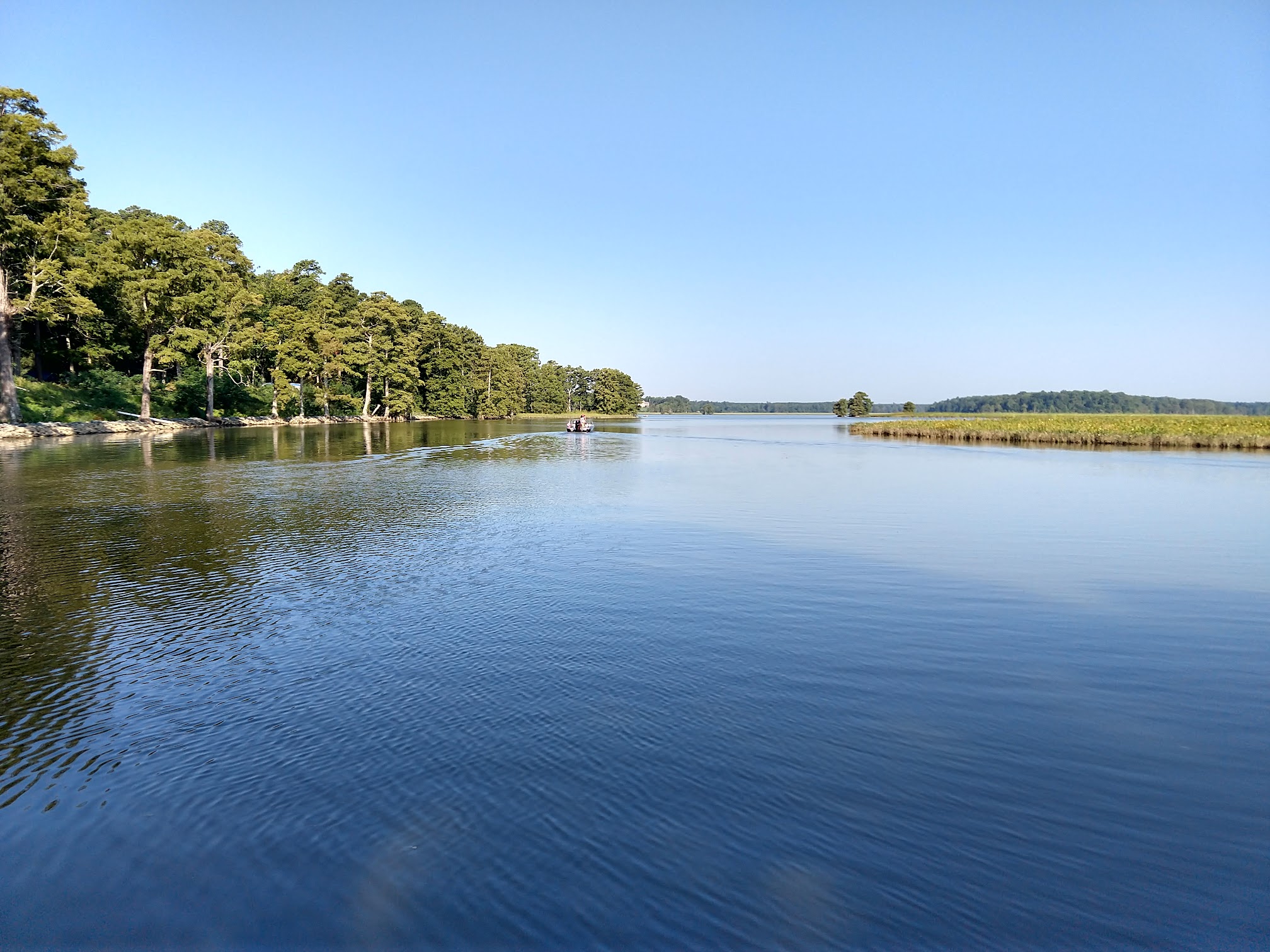 We stayed 1 night and we really enjoyed the park; I would absolutely return and stay longer. We were at campsite 138 which is a very nice site, under a spectacular oak tree, but very far from the bathroom so take that under consideration. The park is very clean, not as much bits of trash that we usually find. The campsite was spacious enough to feel fairly private. The sites that are in the more-wooded area feel tighter although some of those sites have fantastic views and on a hot day it would be nice to be in the shade. There is a fair bit of poison ivy. Boat launch is nice and there's ample parking. Bathrooms are clean. Nice docks to enjoy views Several excellent picnic areas in different locations, one is under large beautiful trees by the boat launch, one under trees in the field. Many beautiful tent sites and many glamping tents right on the water! Dog friendly as long as they are leashed. Beautiful trails along the water and a few beaches with jetties so young children can swim safely. What a wonderful find!