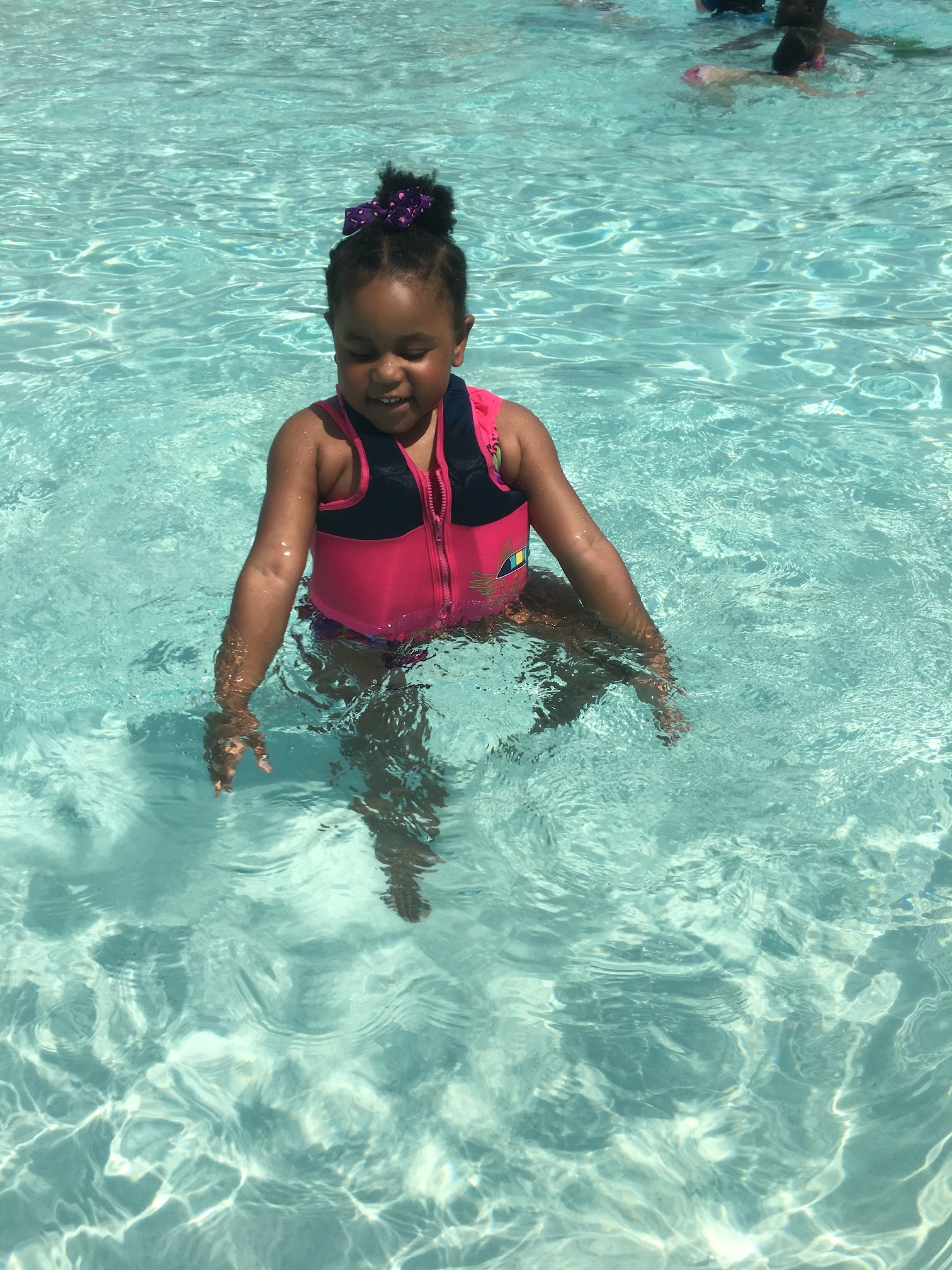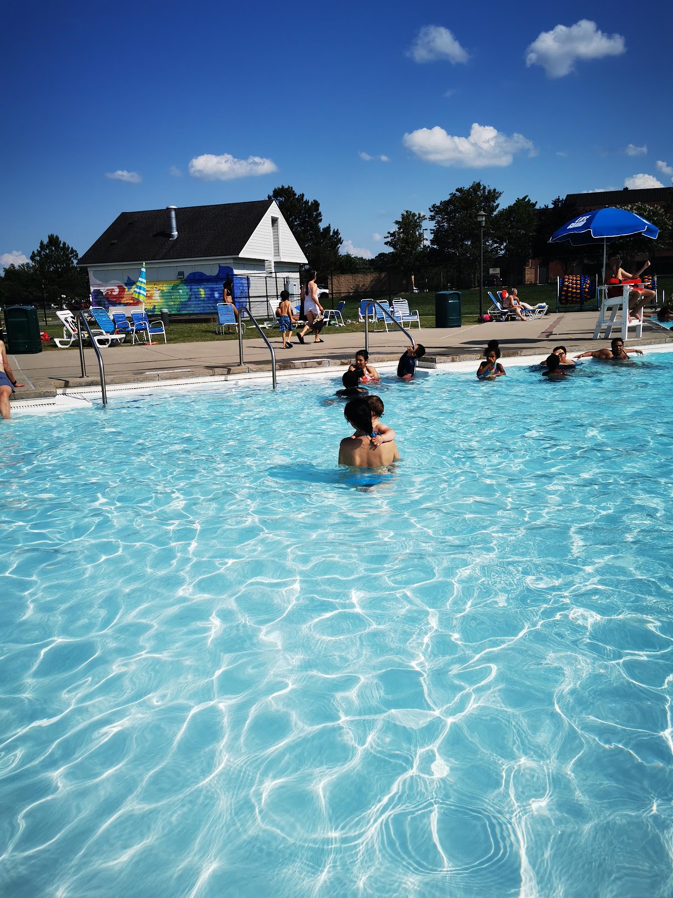 This is a nice pool for children. The kids can do a swim test, earn a wristband and enjoy a great slide. It's a graduated depth walk-in so its good for very young kids to gain some independence in the water. Nice lifeguards, with good attitudes. Negative for me is not enough shade for so many people and the sidewalk is super hot for little feet. Friendly and fun!