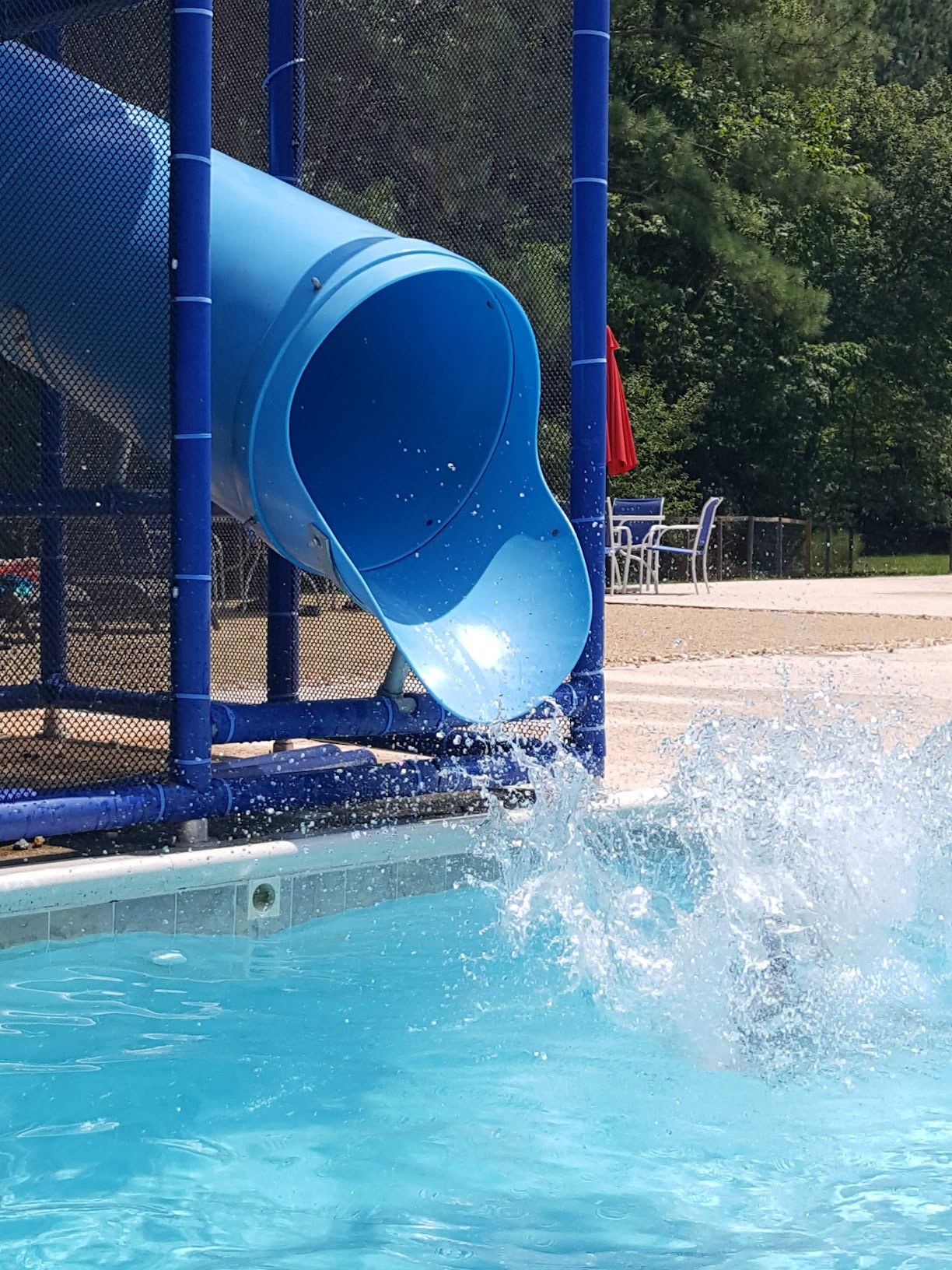 Swim complex featuring 3-4 FT of water for kids, plus a diving board and a slide.
