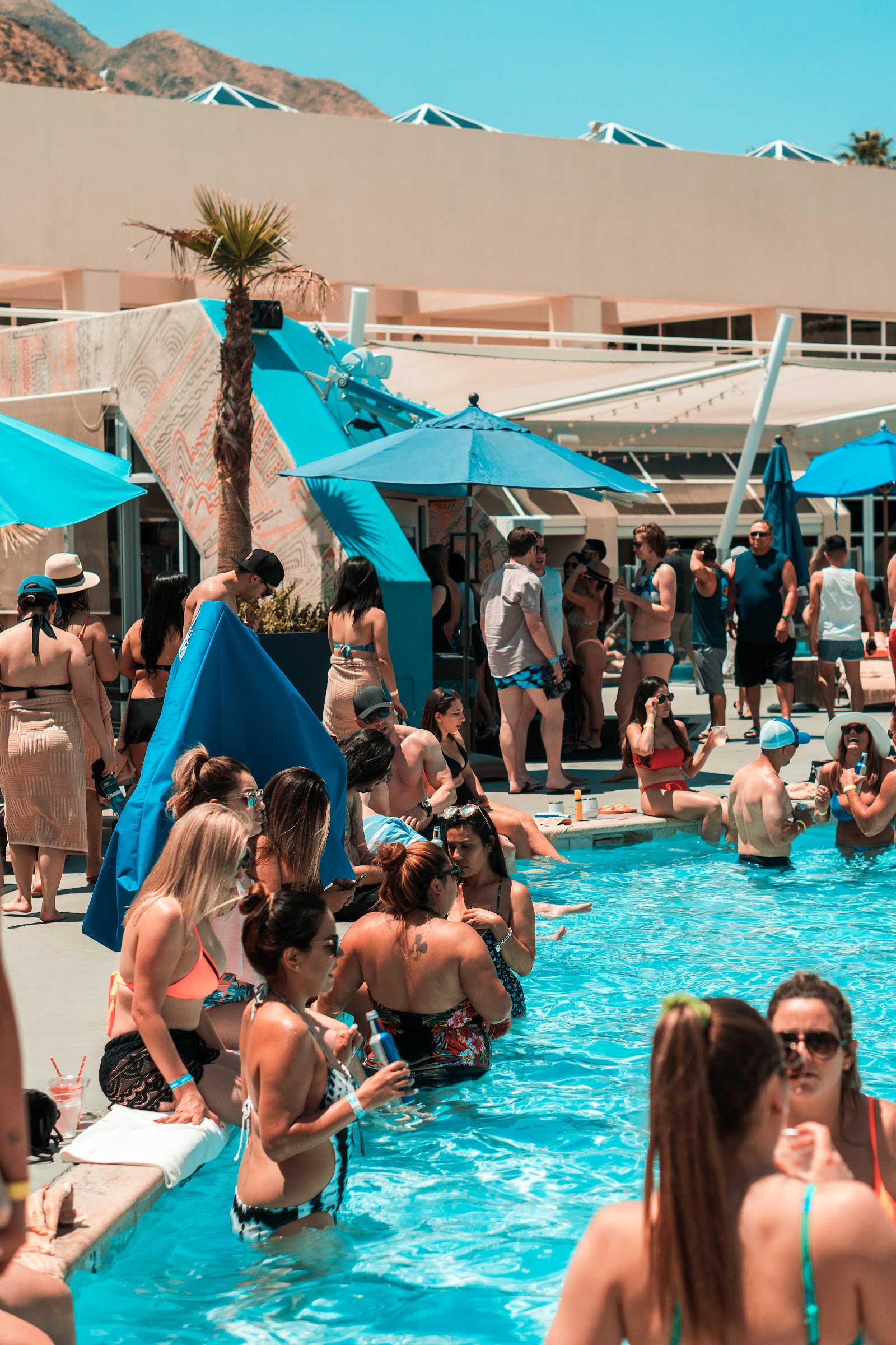 The Flamingo Pool Party at The Flamingo Resort in Palm Springs is a vibrant, retro-themed poolside experience known for its pink aesthetic, live DJs, and lively atmosphere. It's a popular spot for guests to enjoy cocktails, sunbathe, and socialize in a classic Palm Springs setting.