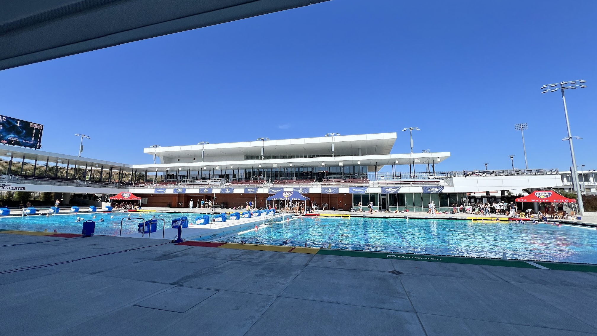What are people saying (AI review summary)? This community college pool is highly regarded as an amazing, new, and top-tier facility, often cited as one of the best for a community college and a leading water polo/swim venue on the West Coast, reportedly built for $8.7 million in 2023. It features stadium seating, hot showers, and a Jumbotron screen. Public open swimming is available weekdays from 5-8 pm for $8, though parking costs an additional $5, which some users find expensive. While the stadium seating is excellent, visitors are advised to bring shade due to sun exposure. Seating is primarily on the west side, with viewing from the 2nd floor on the east.