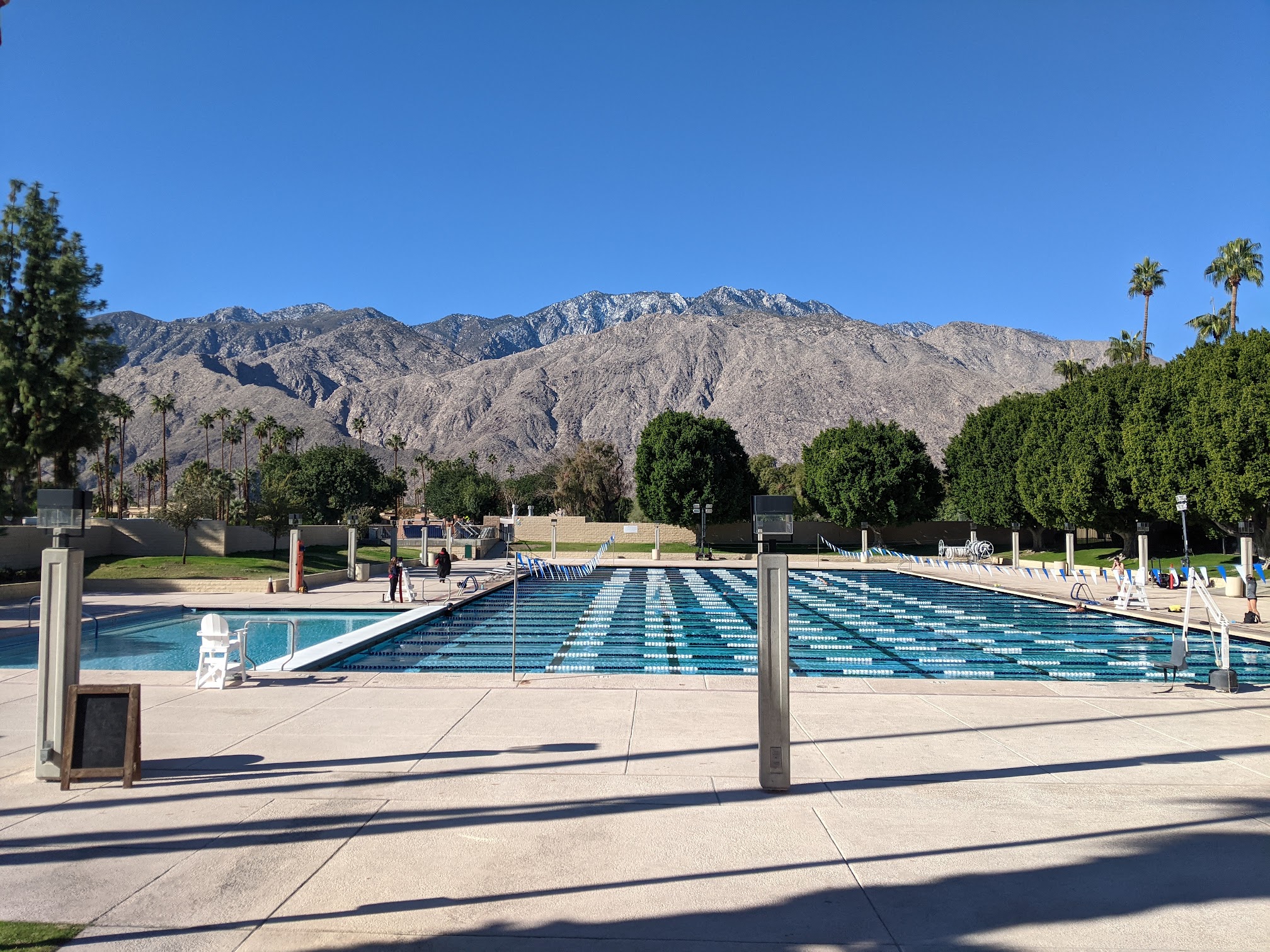 Awesome pool with a spectacular view of the mountains in Palm Spring. The facility has an Olympic pool, huge pool deck as well as locker rooms and showers. Be sure to check out their Swim Team and Water Polo!