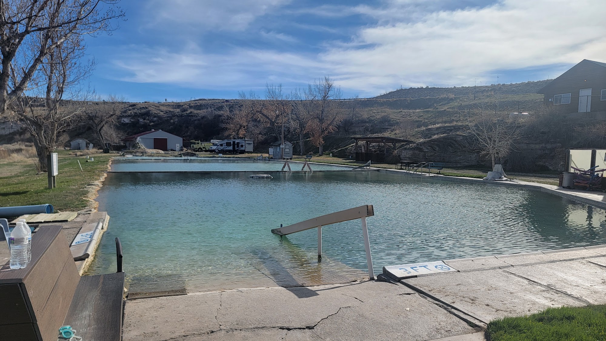 This was an excellent RV park, I could not have reserved a better campground. 10 minutes from thermopolis state park, the park has a good location, and though it is a little bit outdated, it is well maintained. I talked with the new manager, he and his team are very hardworking, they maintain the campgrounds natural hot springs pool regularly, and very responsive to my needs. Excellent place.Excellent hot springs pool.