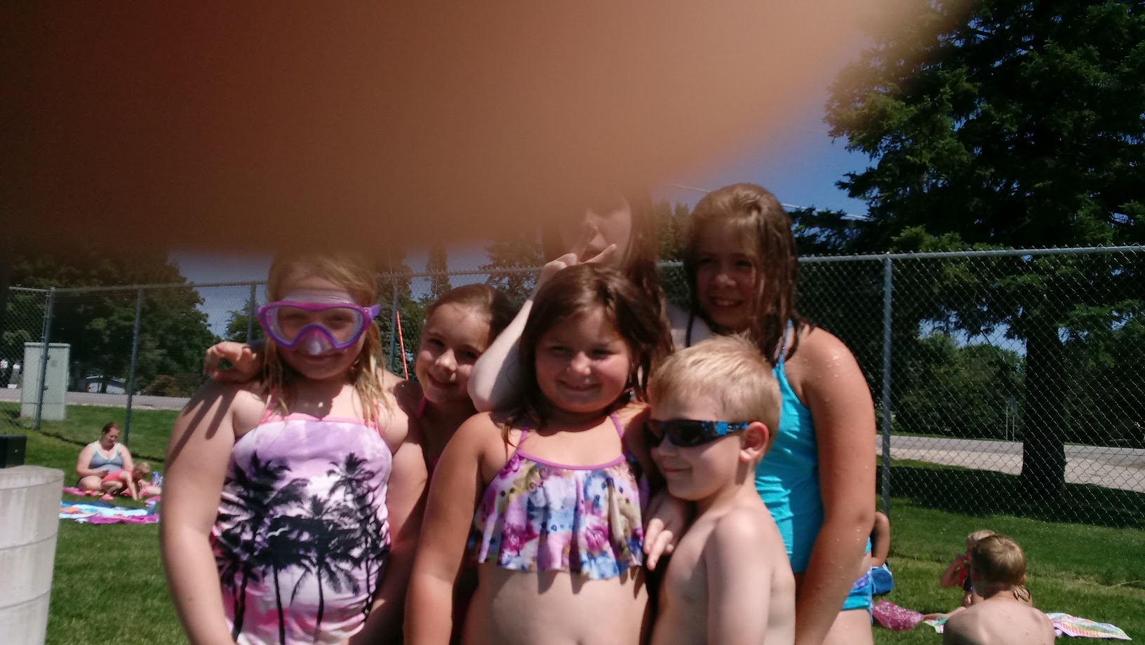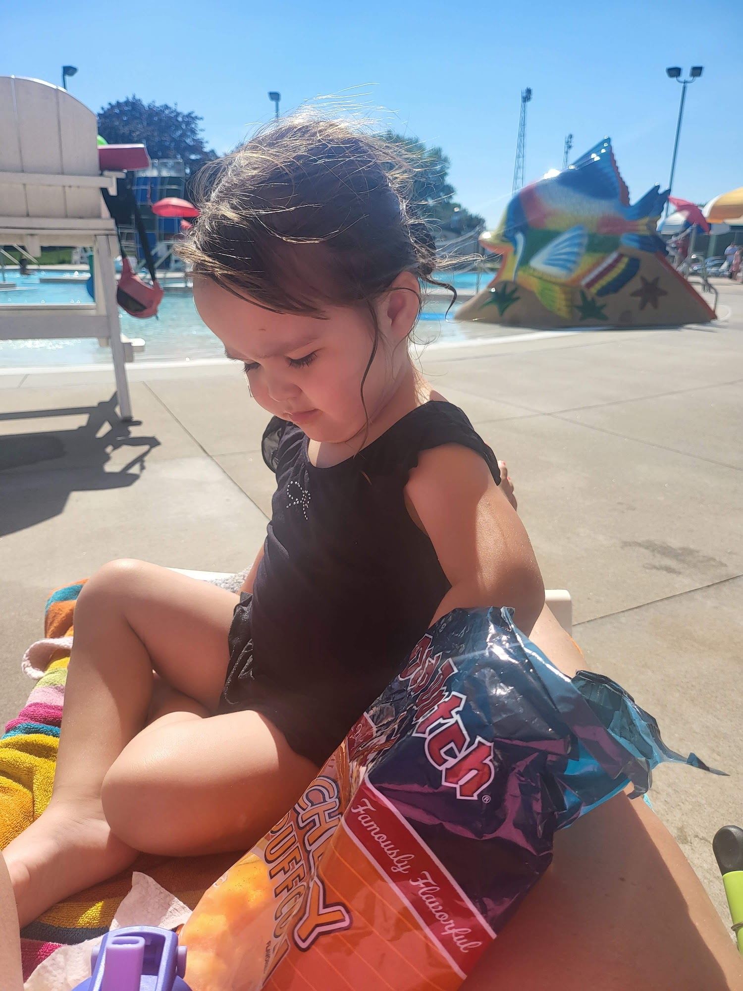 A good ol small town pool. The toddler section had a slide and a little crank that could spray. Better swimming for older kids with a slides and climbing wall.