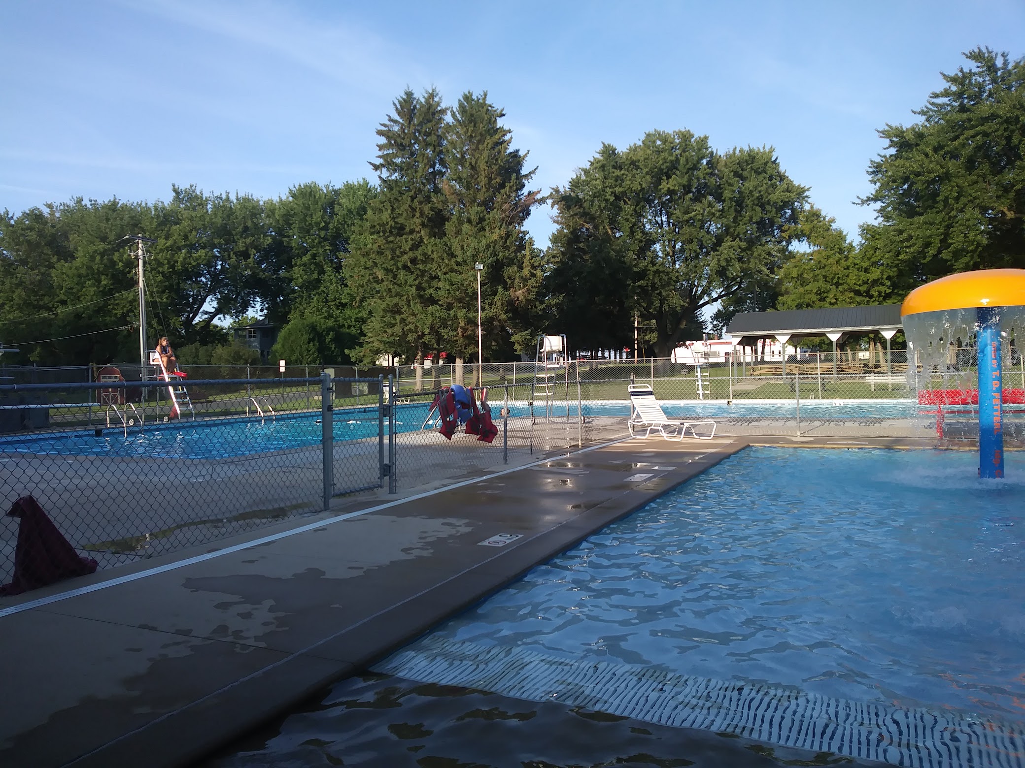 great swimming pool with diving board. also has a separate (gated) toddler pool with zero-depth entry which is awesome for my infant. the women's bathroom definitely needs some attention & more lighting but overall, it's always a lot of fun at this pool.