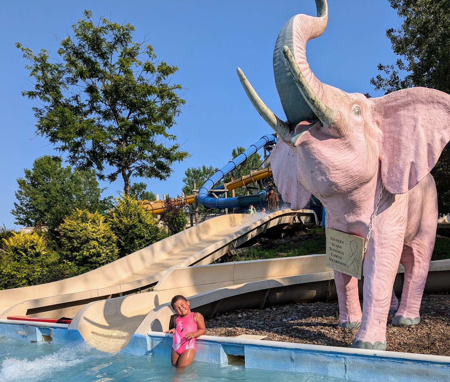 This past Wednesday was the first time I have been to Thunder Island in about 18 years. I love the size of the park, the location of the park, and all the things the kids can do here. The park offers mainly water attractions, however they have mini golf, bumper cars, an inside small gift/candy shoppe, and some sort of zip line ride which was very fun. The kiddie pool water slides were AWESOME! And the pool area for them is great. The only real downfalls for me were the Bees, and the concrete ground which is TERRIBLE on the feet. My feet were so raw and tender from walking barefoot. I will have to bring water shoes the next time I come. Although I liked the lazy river, I wish it was larger. We had a few traffic jams on Wednesday. 🤣