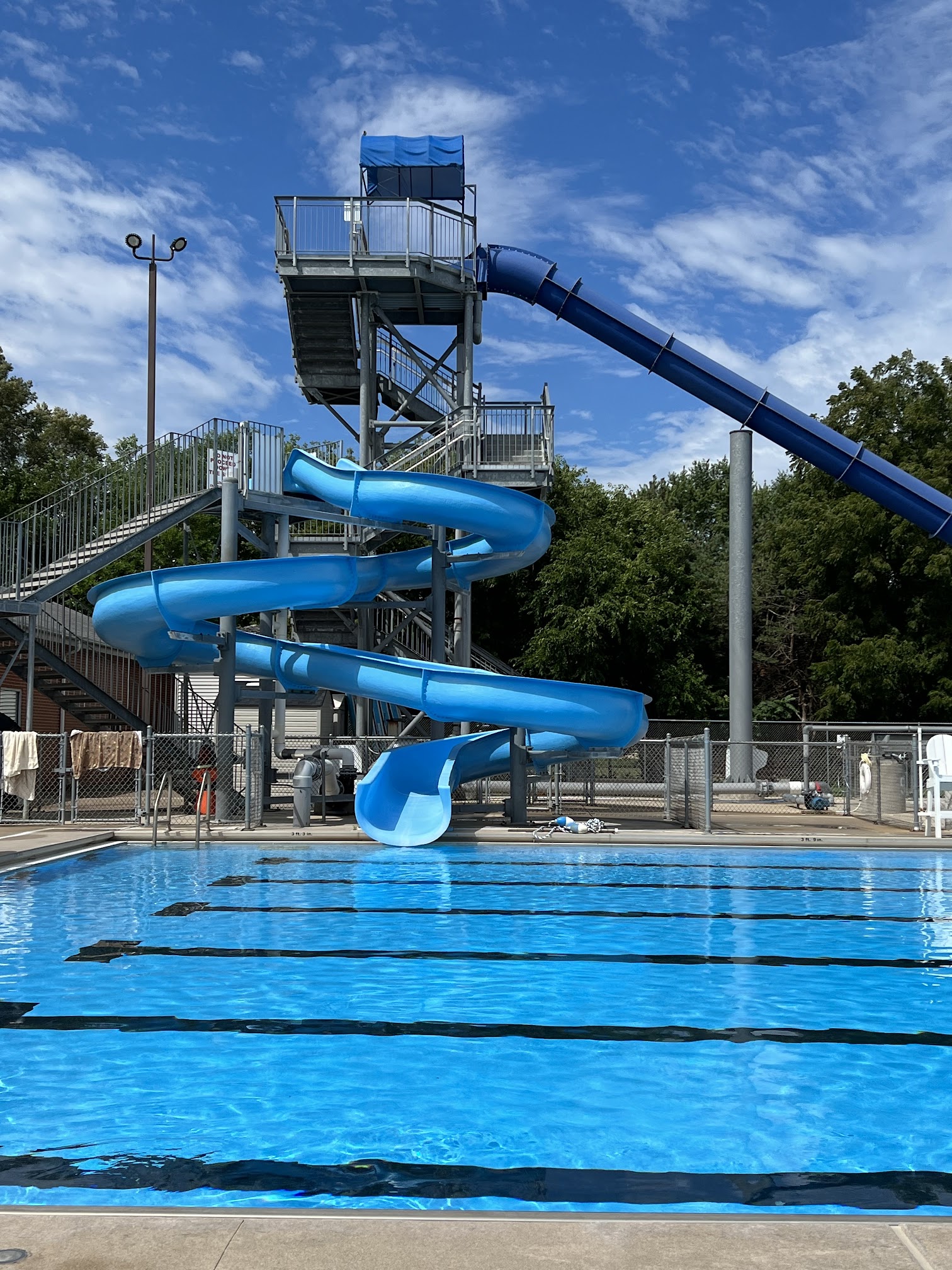 Nice clean local pool with 2 waterslides and a kids pool at Chamberlain Park which has great amenities.