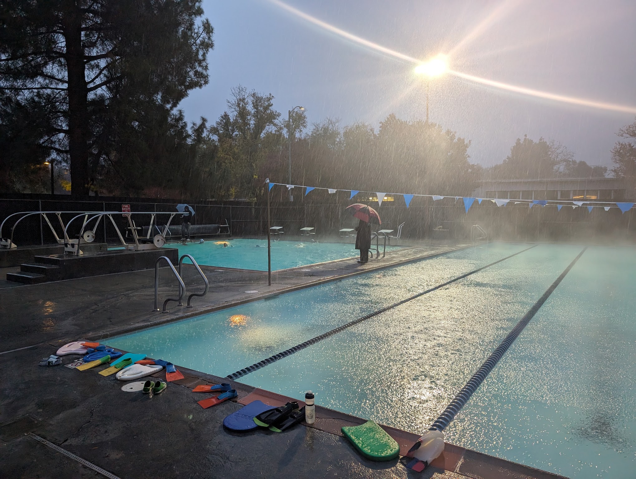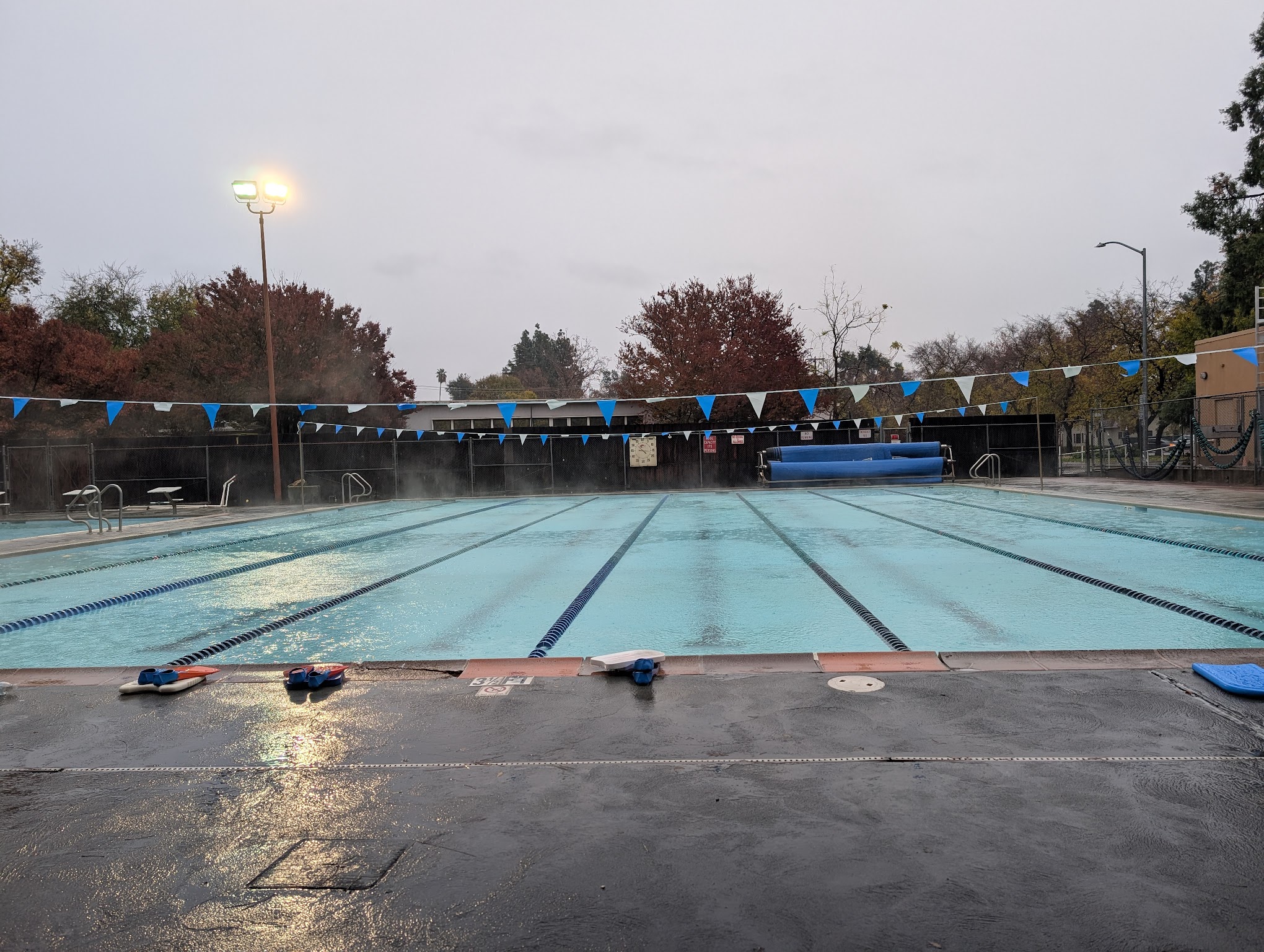 What are people saying (AI review summary)? This is an excellent, well-kept pool facility with good staff, located on City Hall property, offering plenty of trees and visitor parking. It is not open to the general public, but is rented out to organizations for lessons and club workouts.