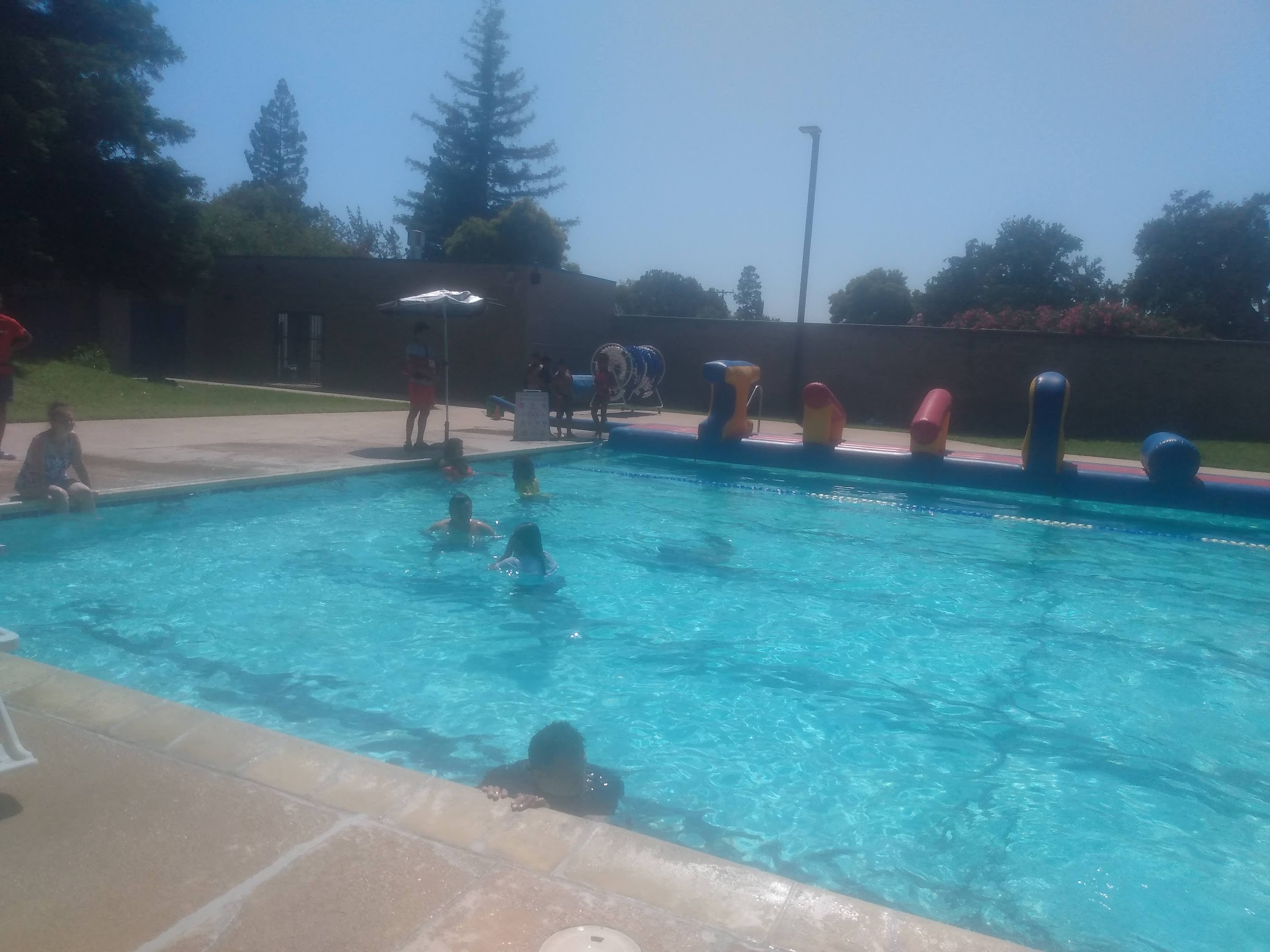 It's actually a very nice pool area unfortunately there's not a lot of shade so bring your own chair to sit on the grass but it is very nice pool very nice people running it