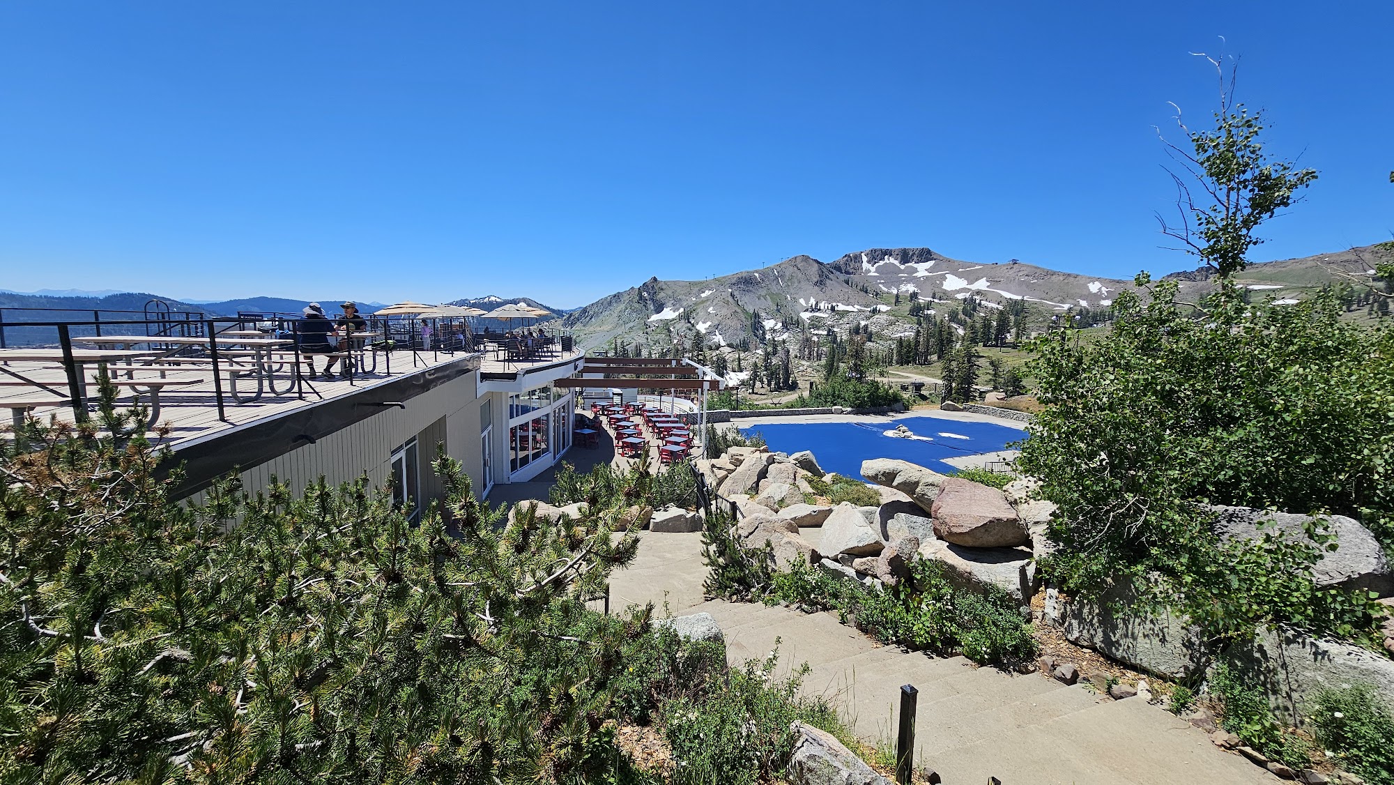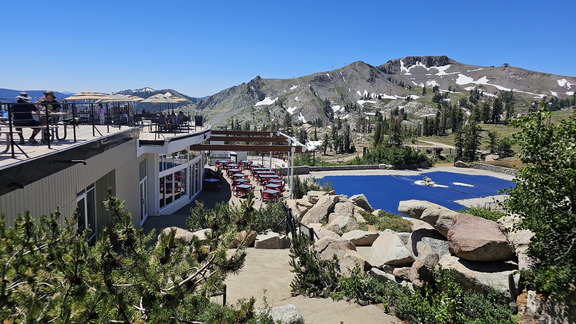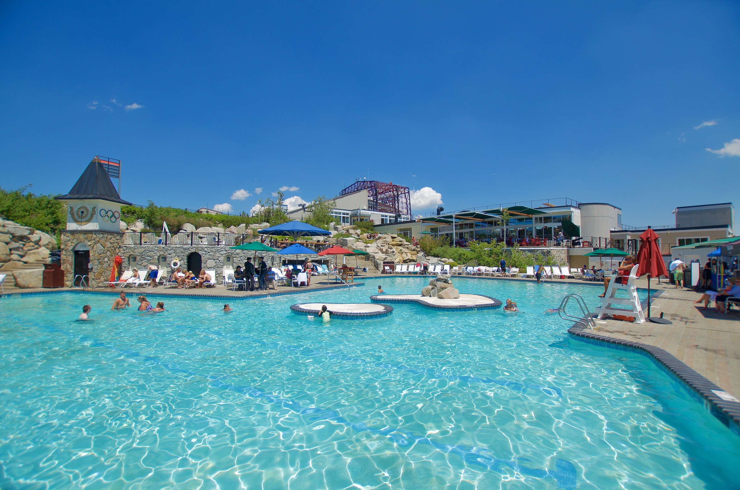 High Camp Pool & Hot Tub is a breathtaking, high-altitude recreational facility located at 8,200 feet at Palisades Tahoe in Olympic Valley, CA. Accessible by aerial tram, it offers an Olympic-sized swimming pool, multiple hot tubs, and a sundeck with panoramic views of Lake Tahoe and the Sierra Nevada mountains, providing a unique resort-like experience amidst stunning natural beauty.