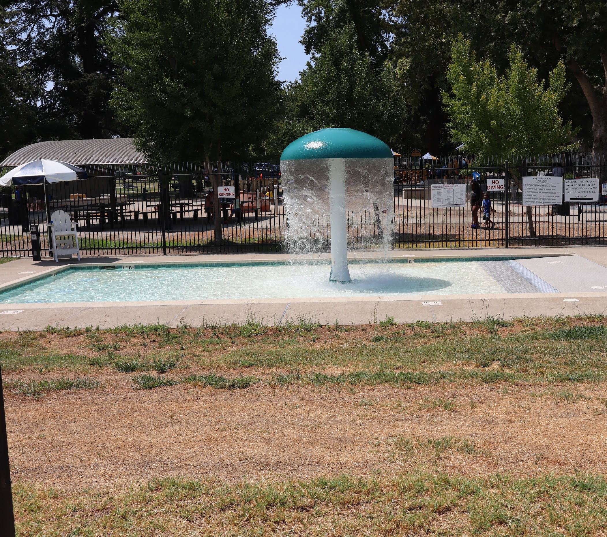 Southside Pool, located within Southside Park in Sacramento, CA, is a public aquatic facility offering recreational swimming and swim lessons, primarily during the summer season. It features a main swimming pool and a shallow wading pool for younger children, along with amenities such as grassy areas, shade structures, restrooms, and showers.