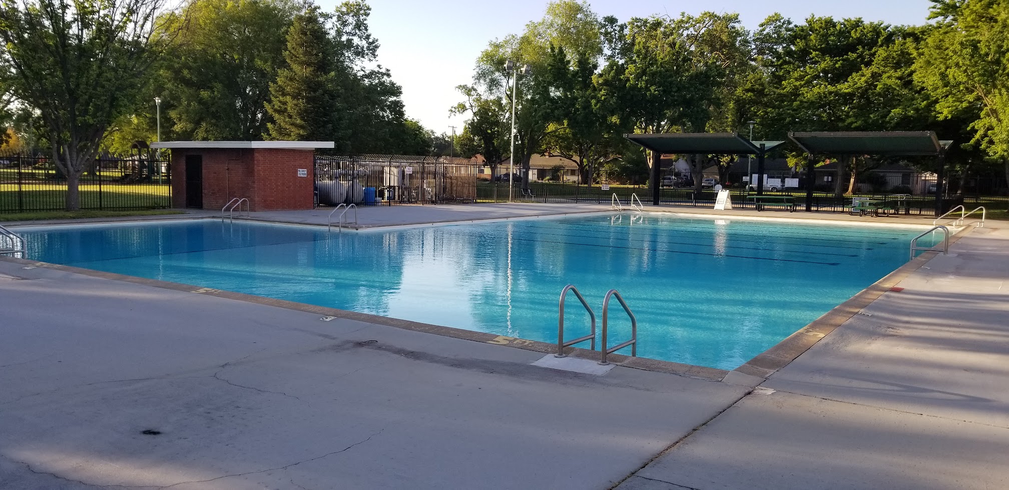 Relaxed park offering a pool for swimming and wading sessions as well as basketball/volleyball and squirrels to feed.