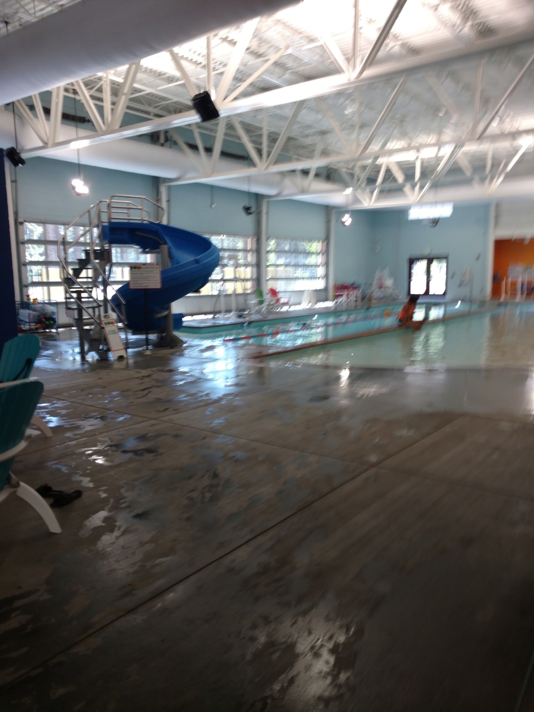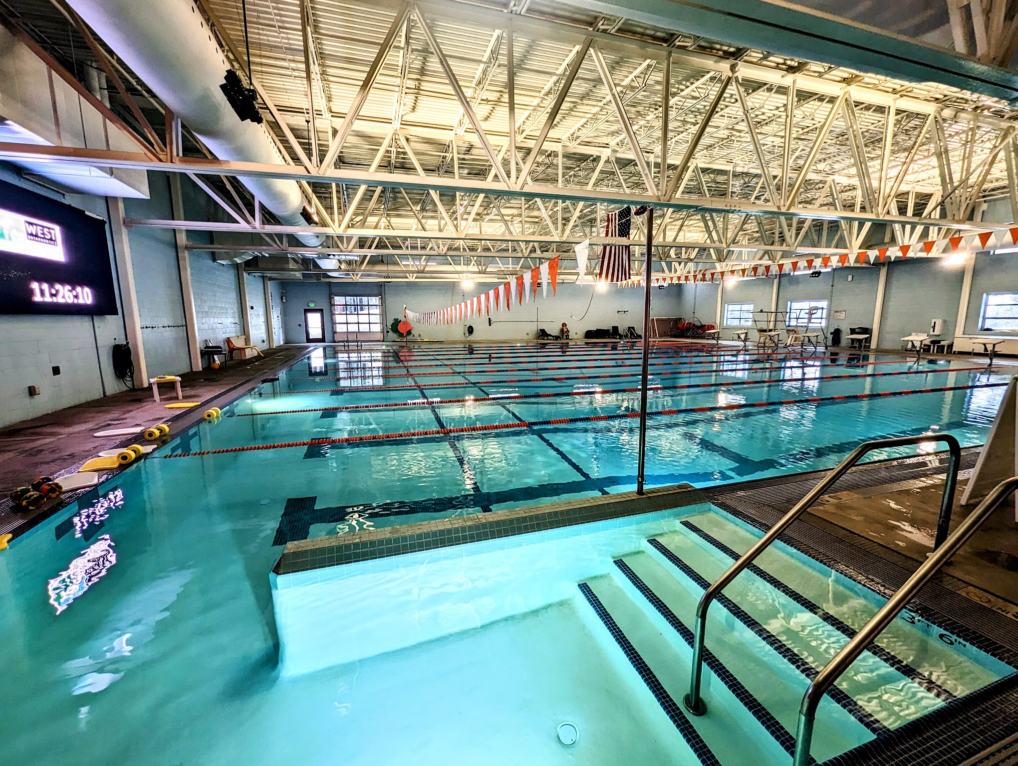 Wonderful community pool. Definitely lots of space for swim meets. Well maintained, and great setup overall. Looks like there's a cute swim area for little ones, too. Beautiful!