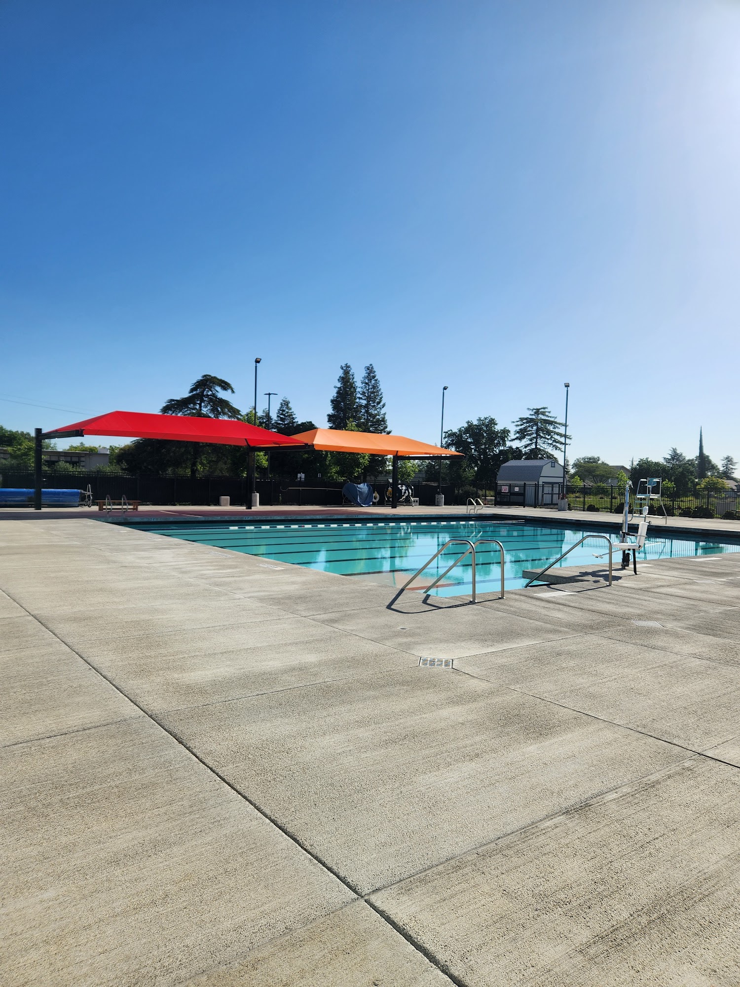 What are people saying (AI review summary)? This local public pool is described as new, well-maintained, clean, and sparkly, featuring separate pools for laps/open swim and a shallow kiddie pool. It is highly regarded for its friendly and accommodating staff, trained lifeguards, and its role in hosting high school aquatic programs and serving the community. The pool is located within a central park that includes various sports fields. However, the park's walking track, once beautiful, is now unmaintained, overgrown with thistles, and suffers from issues of pet waste despite provided bags.