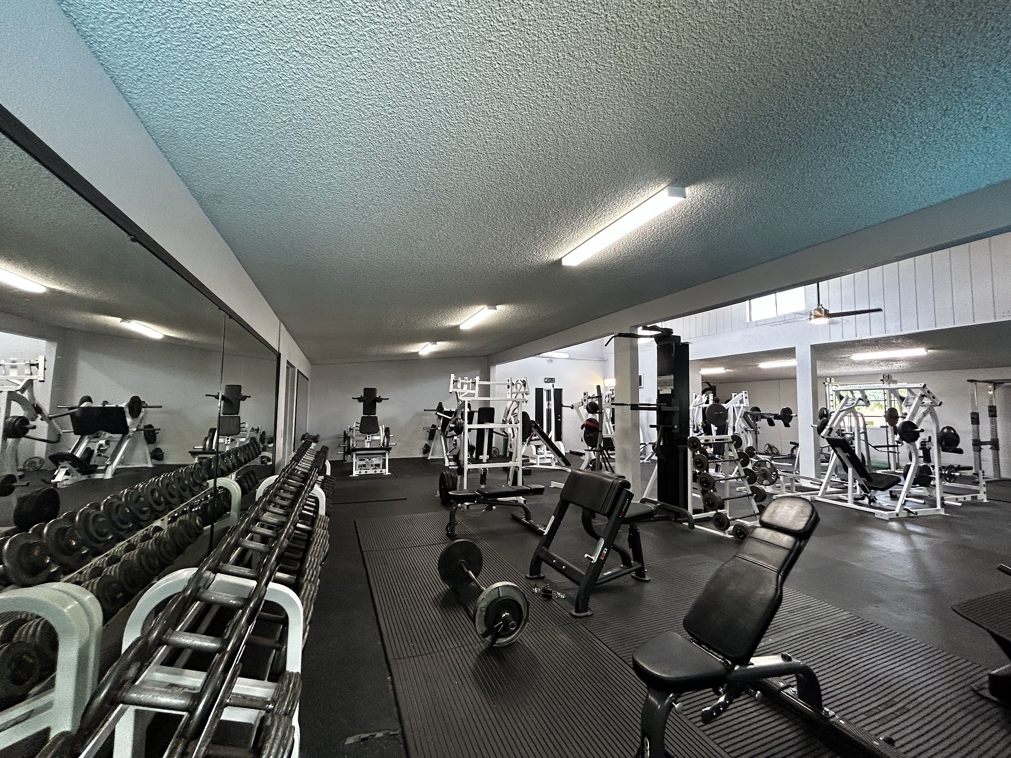 Fitness center offering an array of equipment, as well as a pool, sauna, and hot tub.