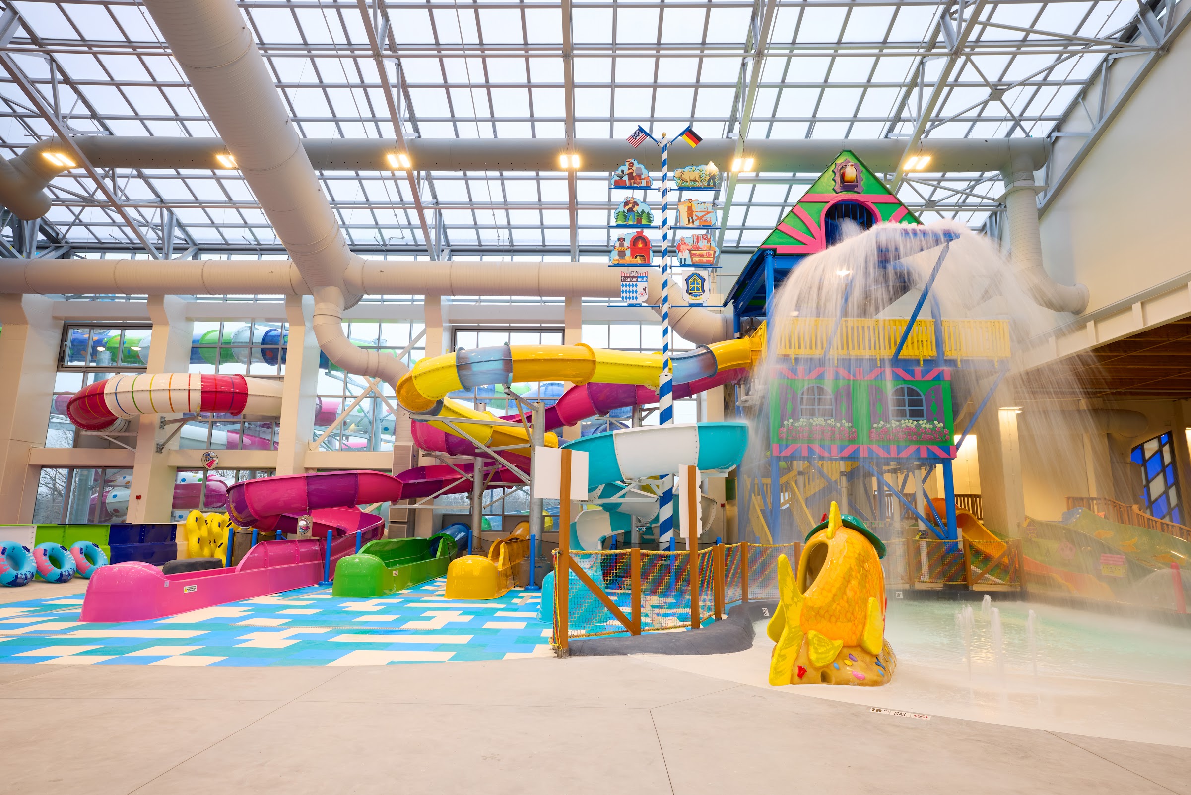 We enjoyed a wonderful stay at the Bavarian Inn! The room was super clean when we arrived. The housekeeping staff was amazing at checking in to see what we needed. The only concern we had with our room was that the bathtub backed up, which we notified the front desk and were told it would be fixed in a few hours, but it was still backed up the next day when we showered (which happened to be the day we left). Some rooms have microwaves and others do not but there are microwaves on the floors for public use. The kids play area and arcade were great. Lots of options for the whole family. The water park and pools were well staffed with lifeguards. Kids are required to wear life jackets and wear bracelets determining which rides they are tall enough for. Lifeguards rotated frequently and overall it felt very safe and well attended. The whole staff was excellent as employees greeted us in hallways and always seemed happy to assist. Great experience; we will definitely be back!
