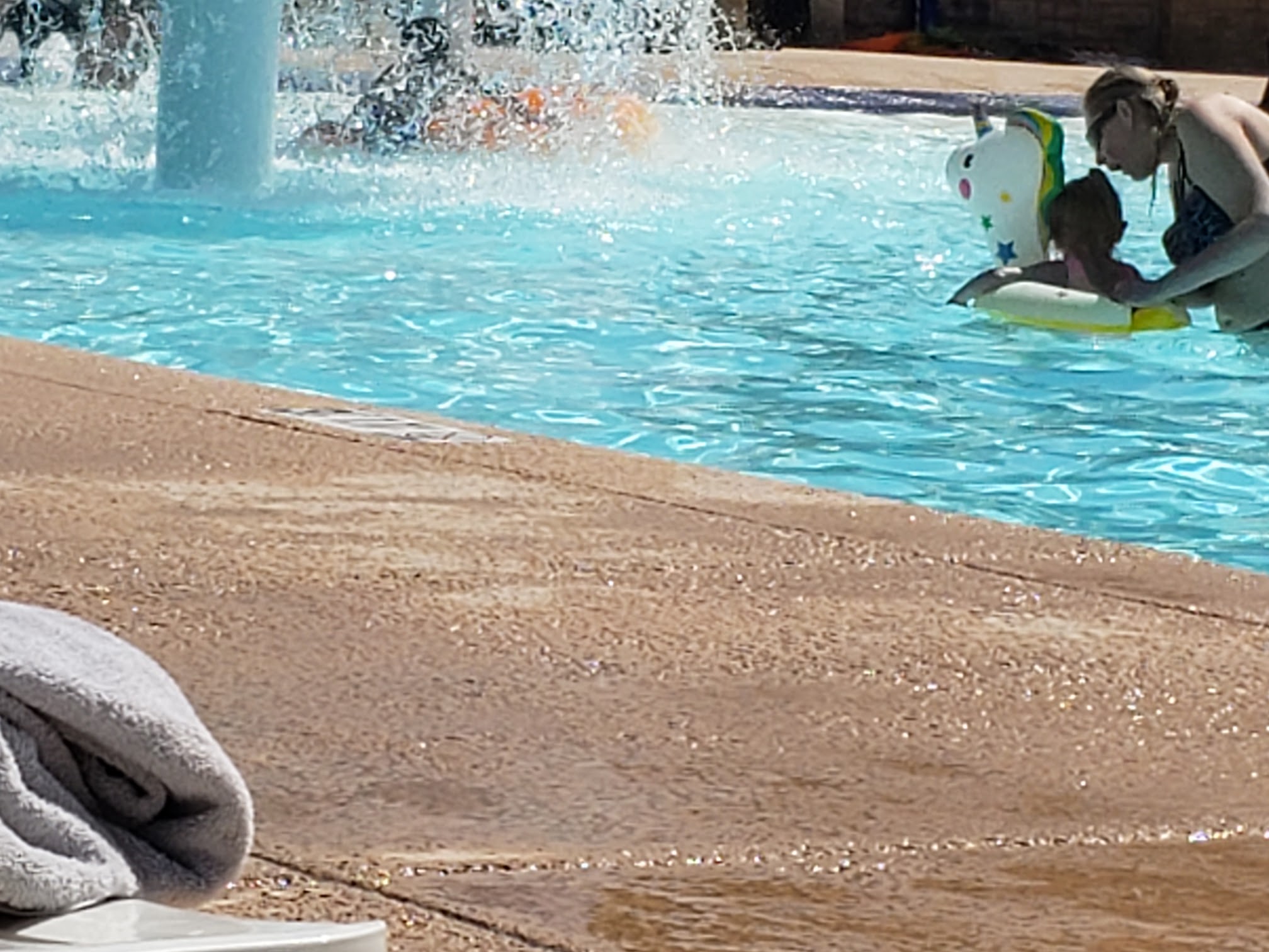 What are people saying (AI review summary)? Reviewers consistently praise this pool as fun and family-friendly, highlighting its zero-entry access, waterfalls, a big slide, and both high and low diving boards. The facility is deemed convenient for all ages, including toddlers and the elderly, and offers fair pricing, with children under three entering free. Lifeguards are frequently commended for being friendly, attentive, and effective in maintaining safety while ensuring enjoyment. A separate, gated kiddy pool with sprinklers is also a popular feature. Minor criticisms include some issues with guests jumping from pool sides or diving boards simultaneously, and a specific complaint about concession water pricing and temperature. Despite these small points, the overall sentiment is highly positive, with many expressing intent to return and one reviewer calling it 'one of the most beautiful pools in America.'