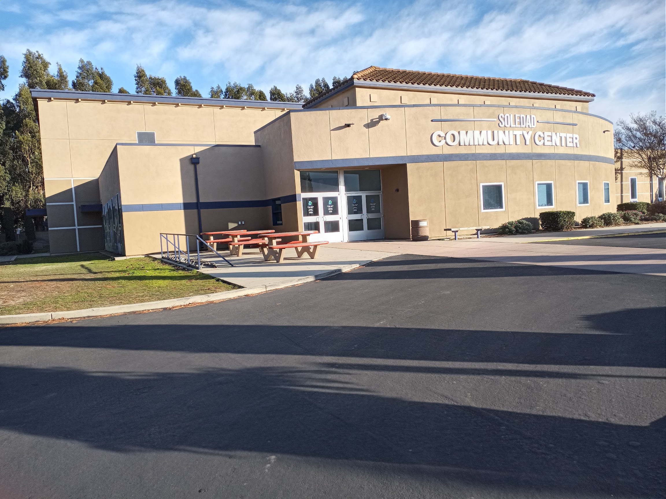 Community recreation center offering a large public swimming pool for family fun.