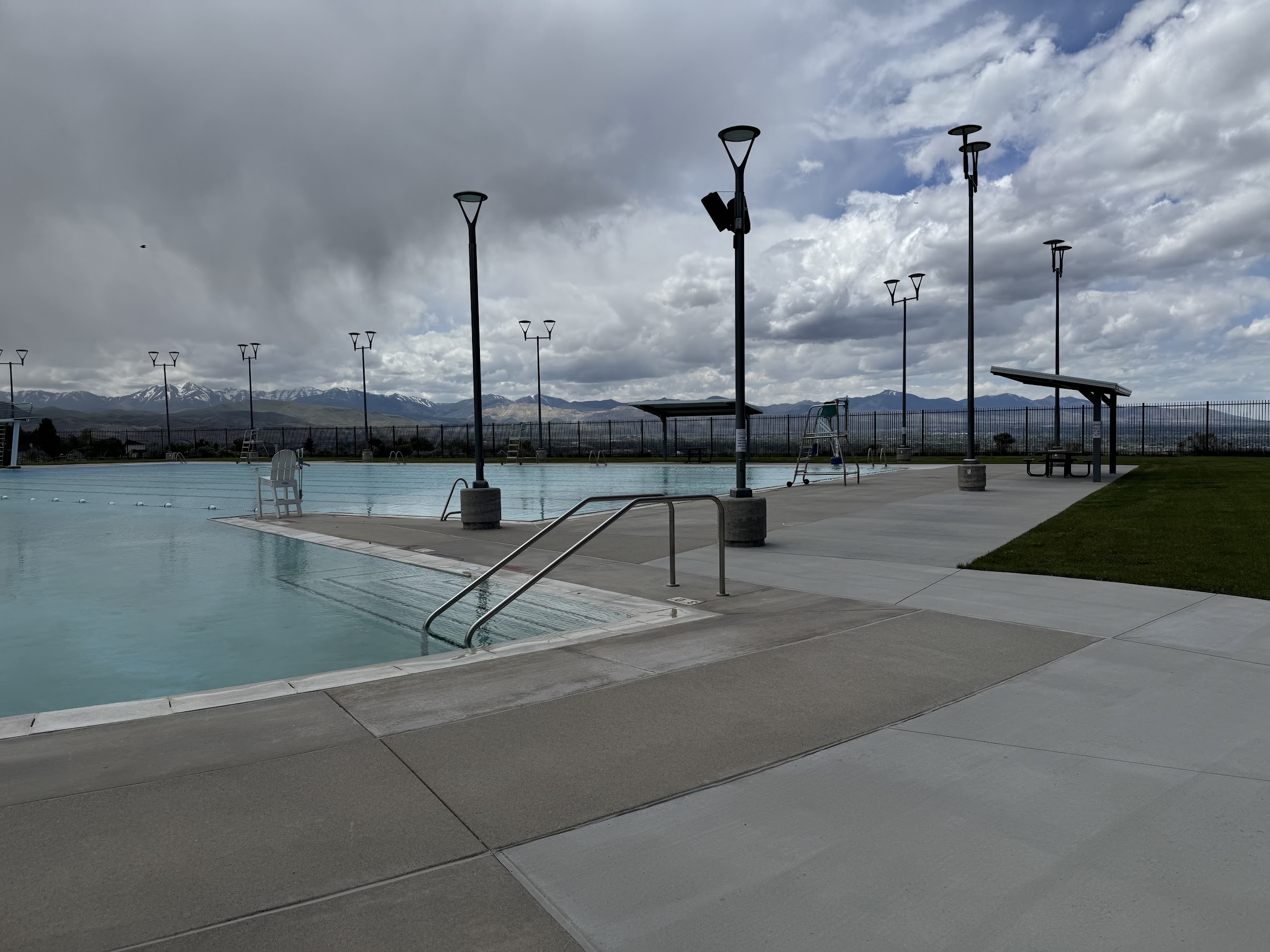 This pool is on the mountain side in south Draper with the most beautiful views. They have some weird open swimming hours depending on the day of the week so make sure you check the pool hours on the day you want to go. The outdoor pool is huge with 2 diving boards (1 normal height and 1 high board) and plenty of swimming lanes. They also have a large kiddie pool outside with a massive playground in it. Inside they have a massive indoor lap pool with an addition large indoor kiddie pool. The outdoor pool is completely surrounded by a lot of grassy areas, so even on the busiest of days you can usually find a spot on the grass to spread out picnic style. We went on the first day the pool opened in 2024 and because it’s a county pool, they were giving free memberships to anyone under the age of 18 under a county initiative to get more kids playing outside. So as long as you could prove you lived in Salt Lake County, all the kids got free memberships for the year.