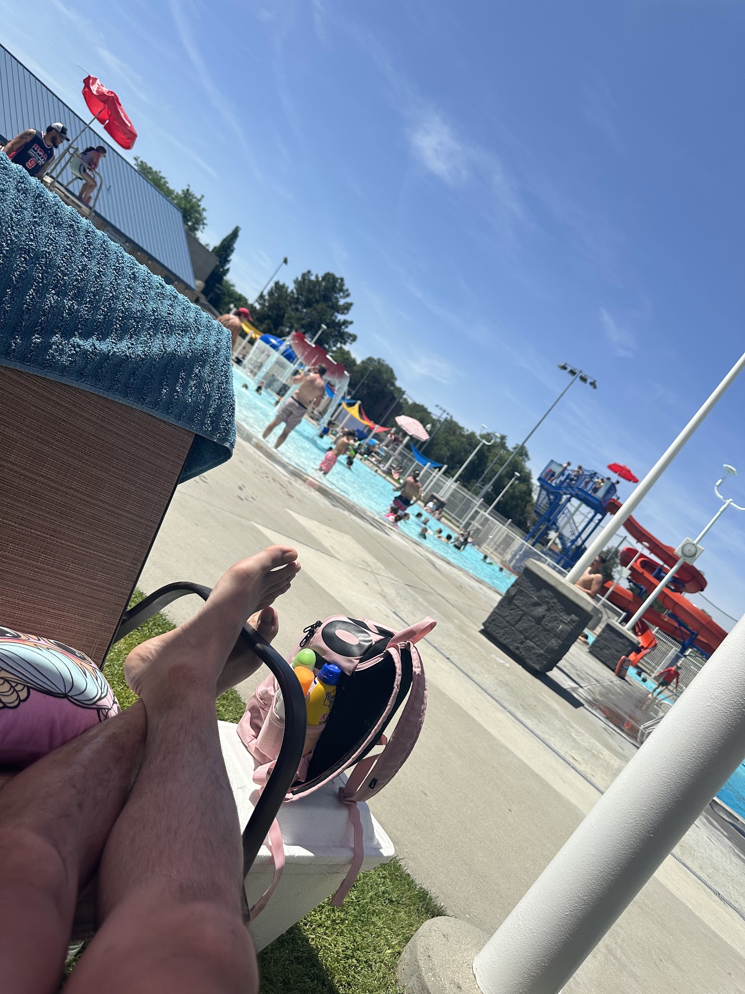 It's fine. Just pretty basic. There's a little slide for kids, some tables and chairs and that's it. They don't sell bottles of water, ice cream, lounge chairs, or have hot tubs or therapy pools. There was also a strange heavy-set lifeguard walking around positively glaring at the kids. I don't know why she decided to be a lifehaurd for children but her aversion for them was palpableand uncomfortable. If you visit, you will be able to pick her out right away, I'm not overreactingat all. It was okay for beating the heat but after an hour I was more than ready to go. Next time I'll try absolutely any other pool other than this one.