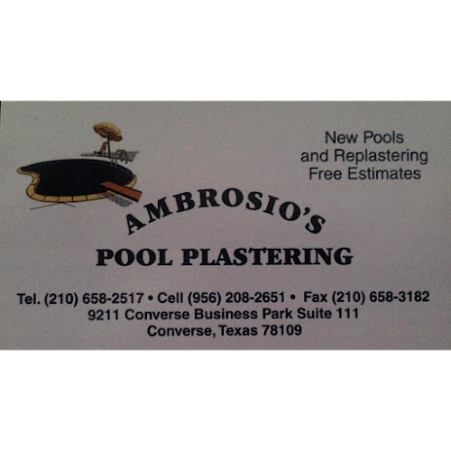 Ambrosio's Pool Plastering, located at 9211 Converse Business Ln, Converse, TX 78109, USA, is a company specializing in swimming pool plastering, resurfacing, and renovation services. They focus on the interior finish and structural integrity of pools, providing solutions for both residential and commercial clients to restore and enhance their swimming areas.